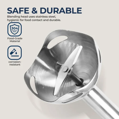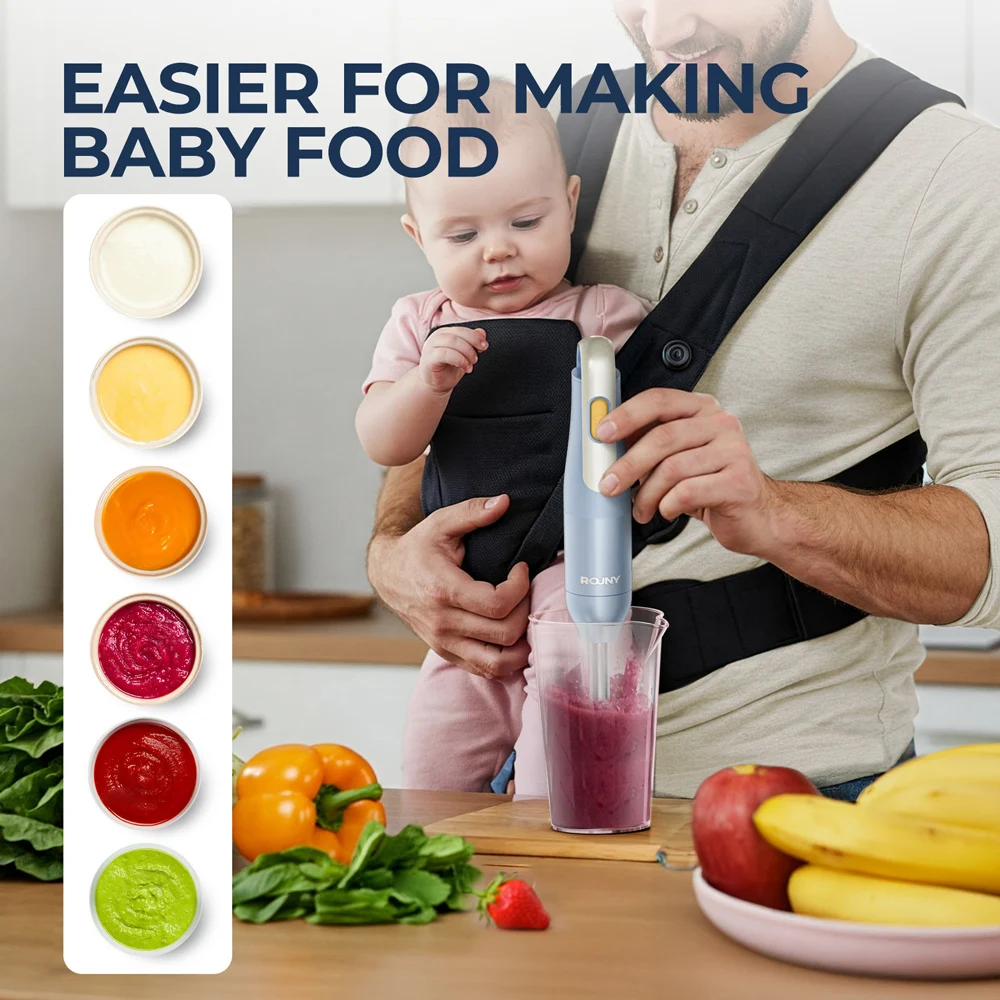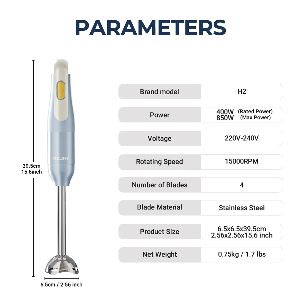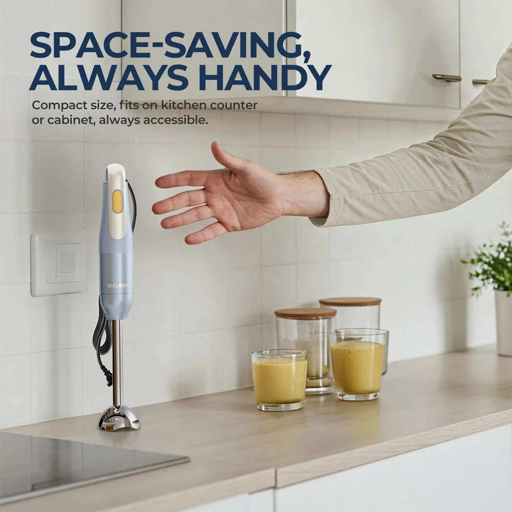 ROUNY Handheld Immersion Blender, Light Blue, Stainless Steel Blades