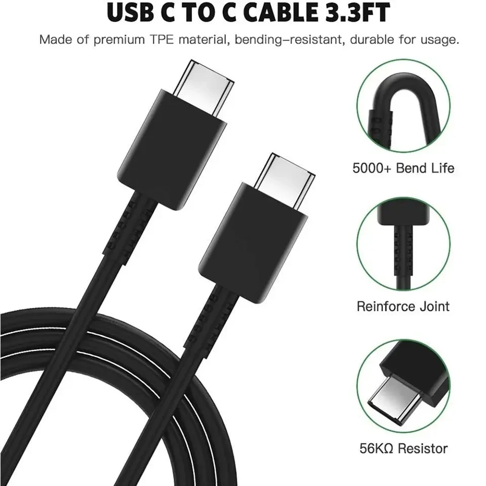 45W 5A EU Plug Super Fast PD Wall Charger For Samsung S21 S22 FE S23 S24 Plus S25 Note 10 20 Ultra A14 A15 A25 A34 A53 A54 A55 A71 A73 Type-C to USB-C Rapid Charging Cable 1m 1.5m 2m ( Black )