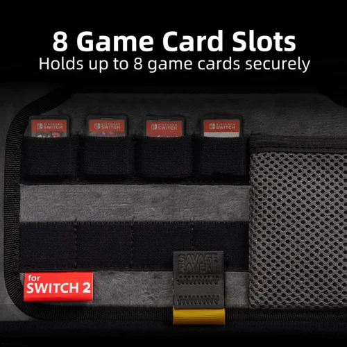 Storage space – 8 game card slots and a mesh pocket to store your small accessories.