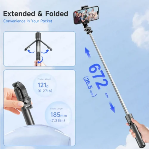 2-in-1 Design: Can be used as a selfie stick or tripod.