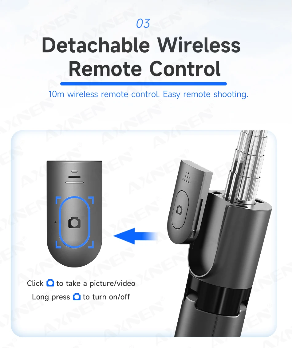 Detachable Bluetooth Remote: Control the camera from a distance.
