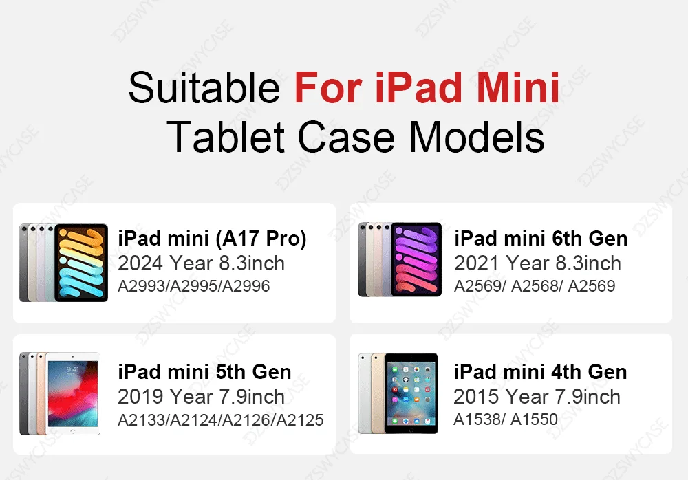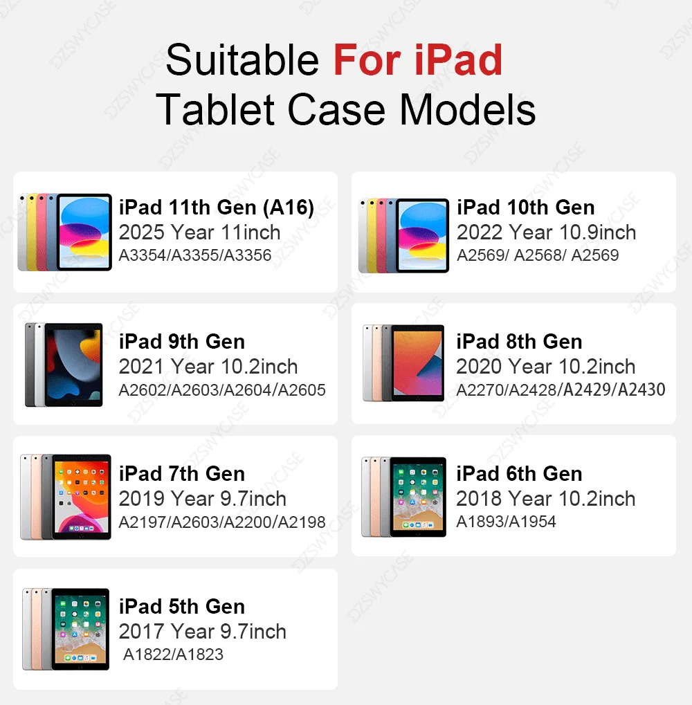iPad 10th 10.9, iPad 11th A16 11, iPad 5 6th 9.7, iPad 7 8 9th 10.2, iPad air 1 2 9.7, iPad Air 11 M2 M3, iPad Air 4 5 10.9, iPad Mini 4 5, iPad mini 6 7 A17Pro, iPad Pro 11 2nd, iPad Pro 11 3rd 4th, iPad Pro 11 M4