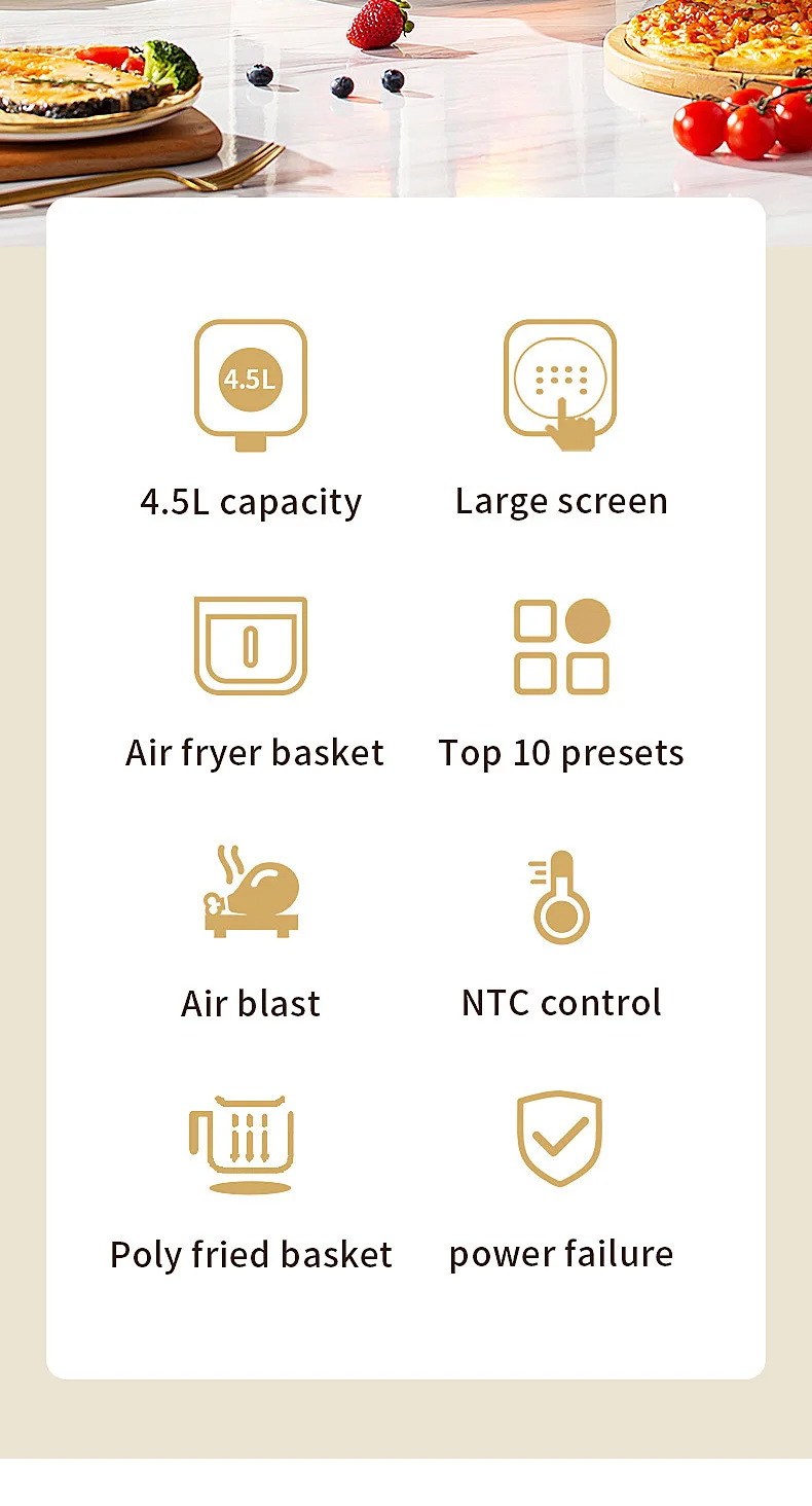 Smart Air Fryer 4.5L with Visual Window – Oil-Free, Automatic Convection Oven