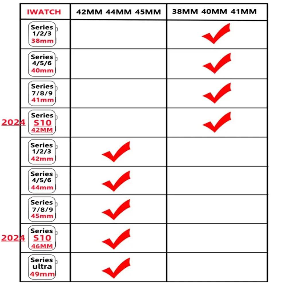– Compatible with Apple Watch Series 10 42MM (38, 40, 41 S10-42mm) and 46MM (42, 44, 45, 49 S10-46mm).