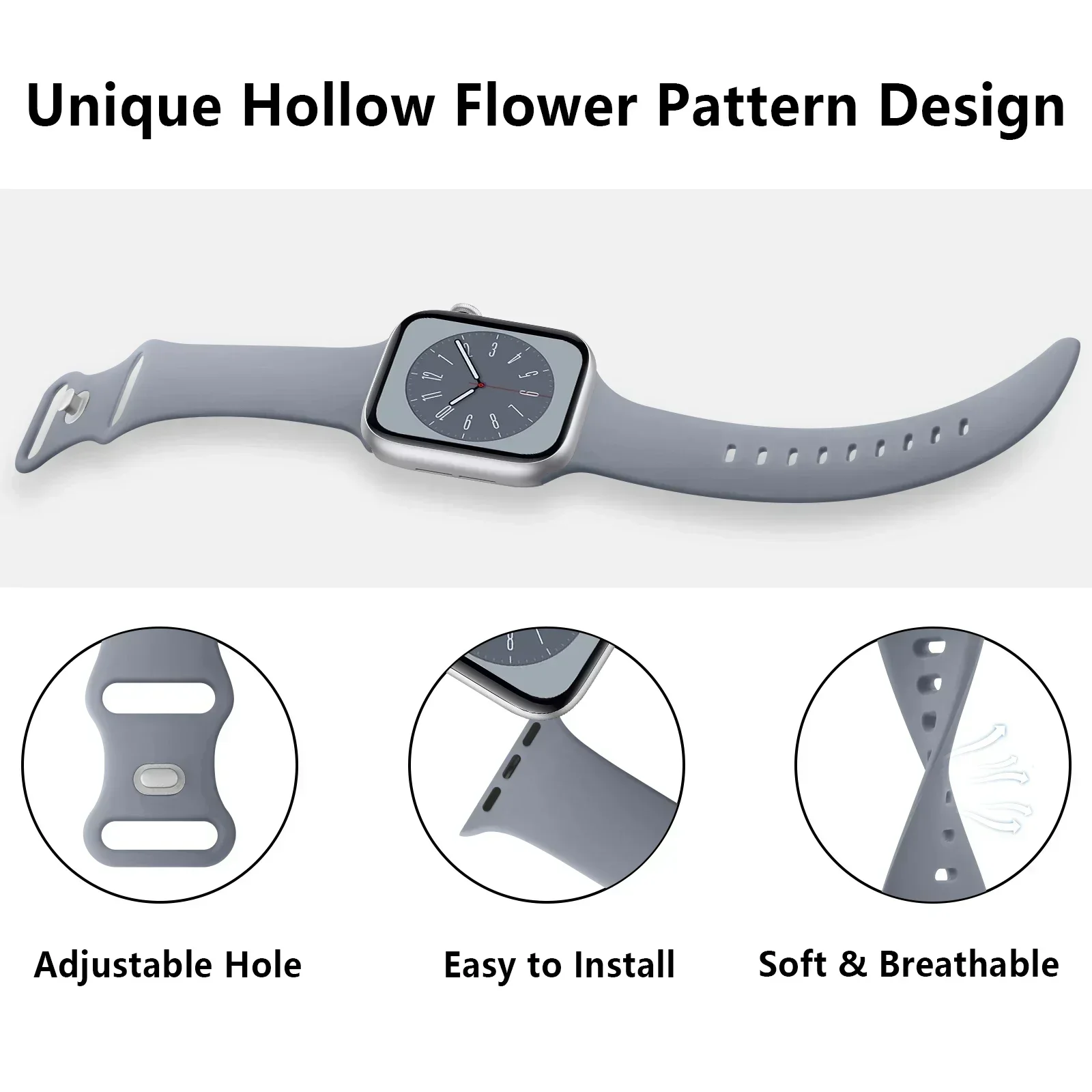 – Soft silicone band compatible with Apple Watch models 1 through SE and the new 2024 Apple Watch Series 10.