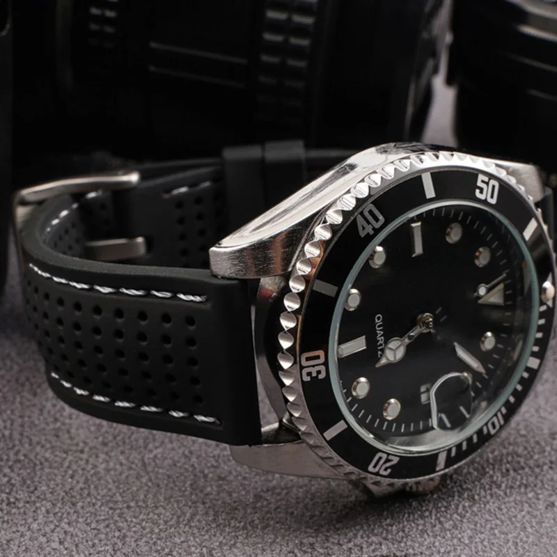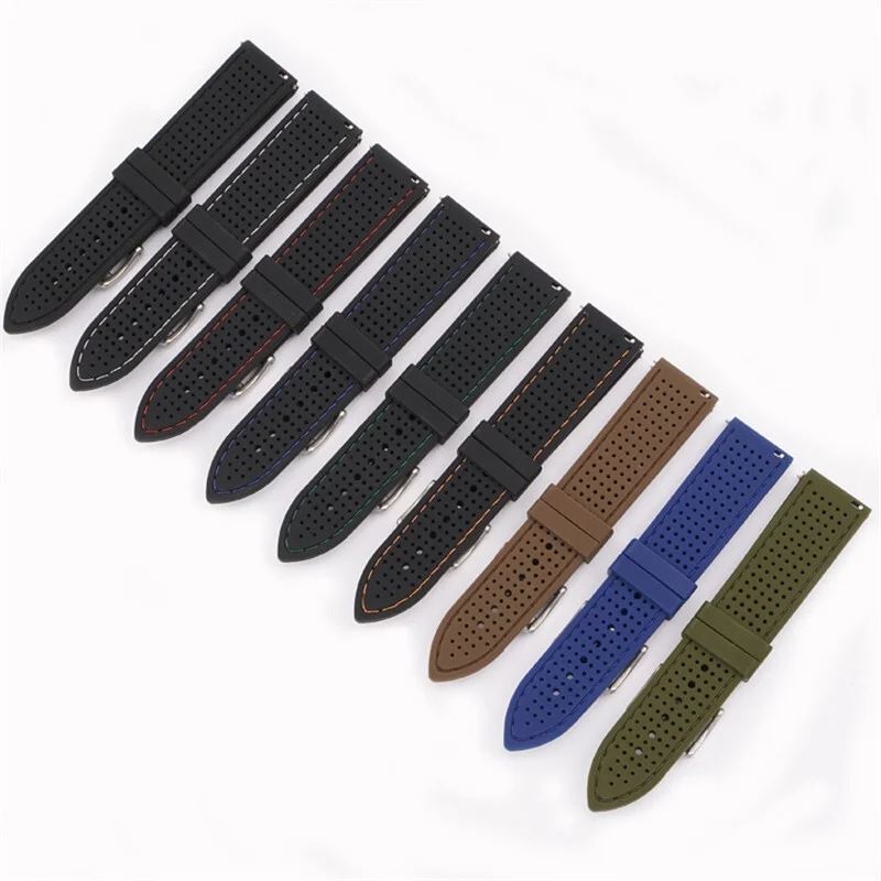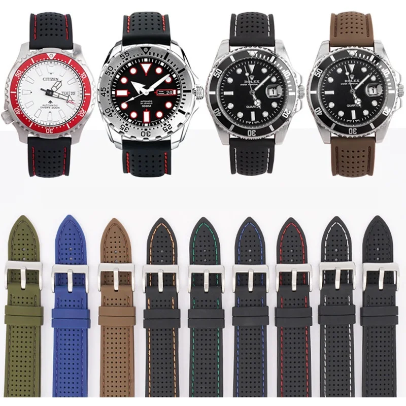 – Soft silicone rubber watch strap available in various sizes and colors.