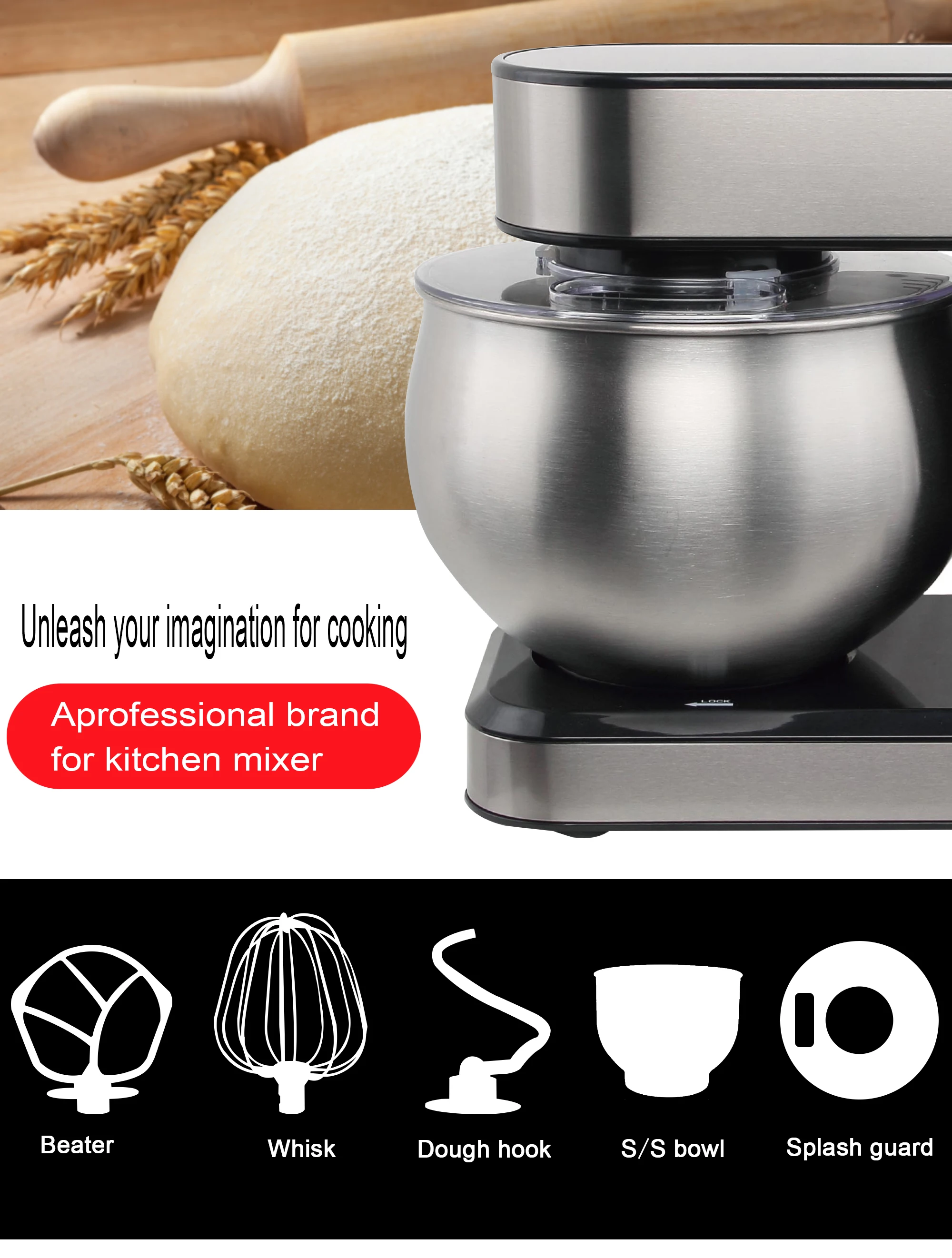 | Accessory Type | Dough Hook,Flat Beater,Mixing Bowl,Pouring Shield,Wire Whip |