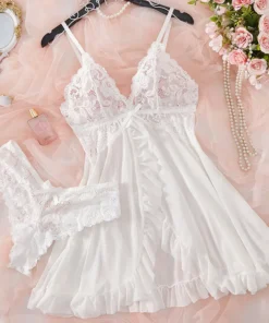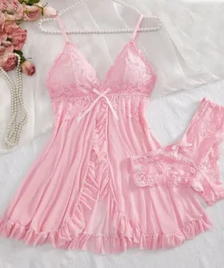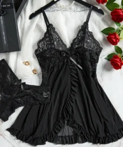 Be the first to review “Lingerie Dress with Lace See-Through Design for Women Slim Soft V Neck Sleepwear”