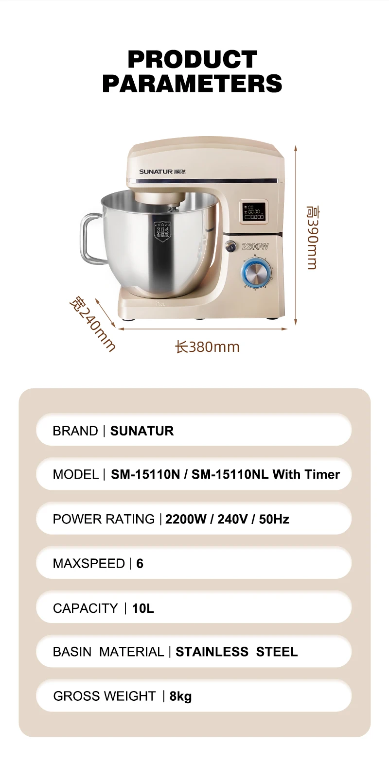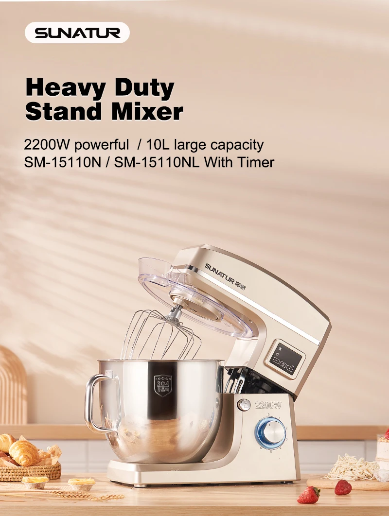 SUNATUR 10L 2200W Stand Mixer – Automatic Dough Kneader and Blender
