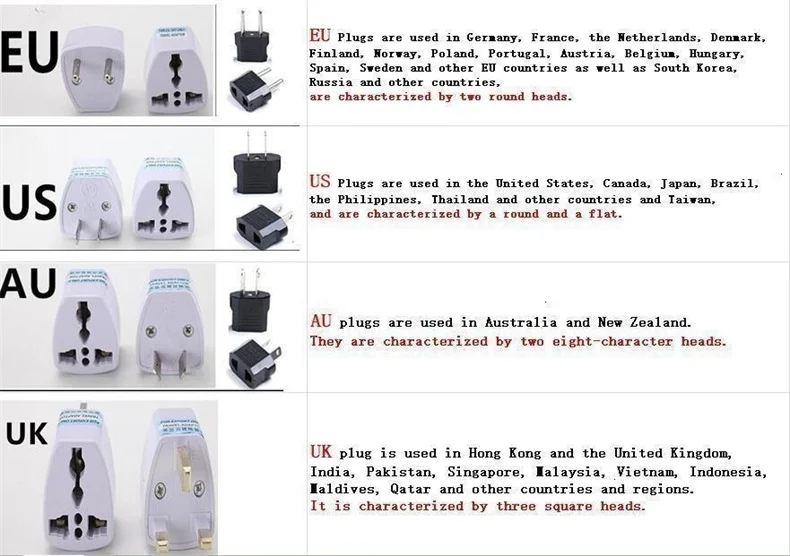 If the plug of the product is a Chinese plug. We will provide suitable adapters according to the order address. Please refer to the adapter type in the picture.