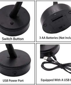 – Powered by 3 AA batteries (not included) or a USB cable (adapter not included)