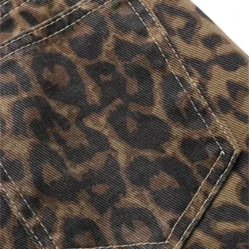Tan Leopard Print Wide Leg Jeans for Women – Casual Oversized Denim Trousers