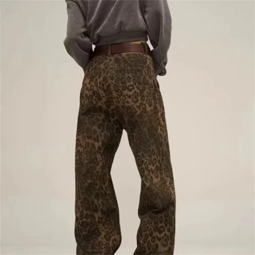 Be the first to review “Tan Leopard Print Wide Leg Jeans for Women – Casual Oversized Denim Trousers”