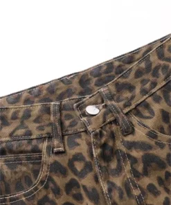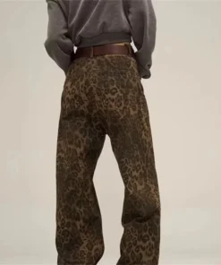 Be the first to review “Wide Leg Jeans for Women – Tan Leopard Print Casual Oversized Denim Trousers”