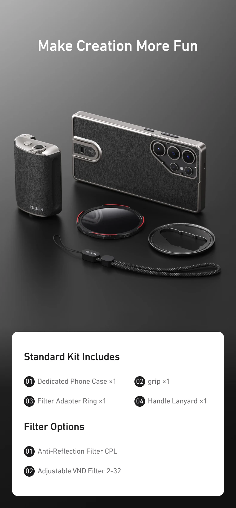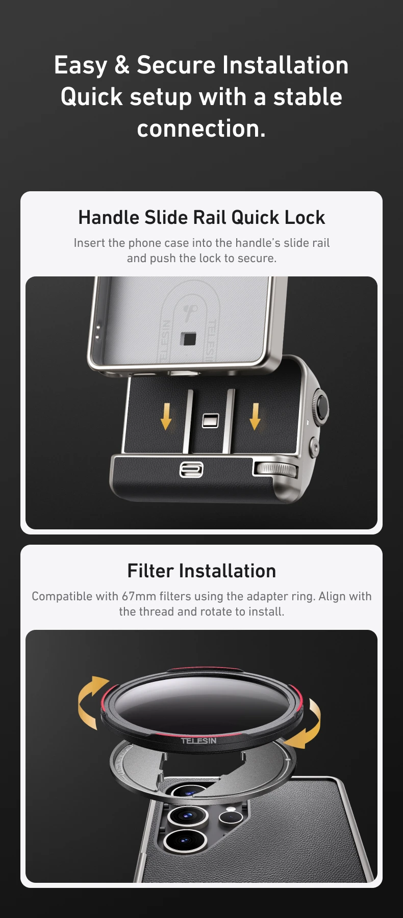 TELESIN Master Shooting Set Phone Camera Hand Grip Phone Holder CPL ND 2-32 Filter Remote Handle For SAMSUNG Galaxy S25 Ultra