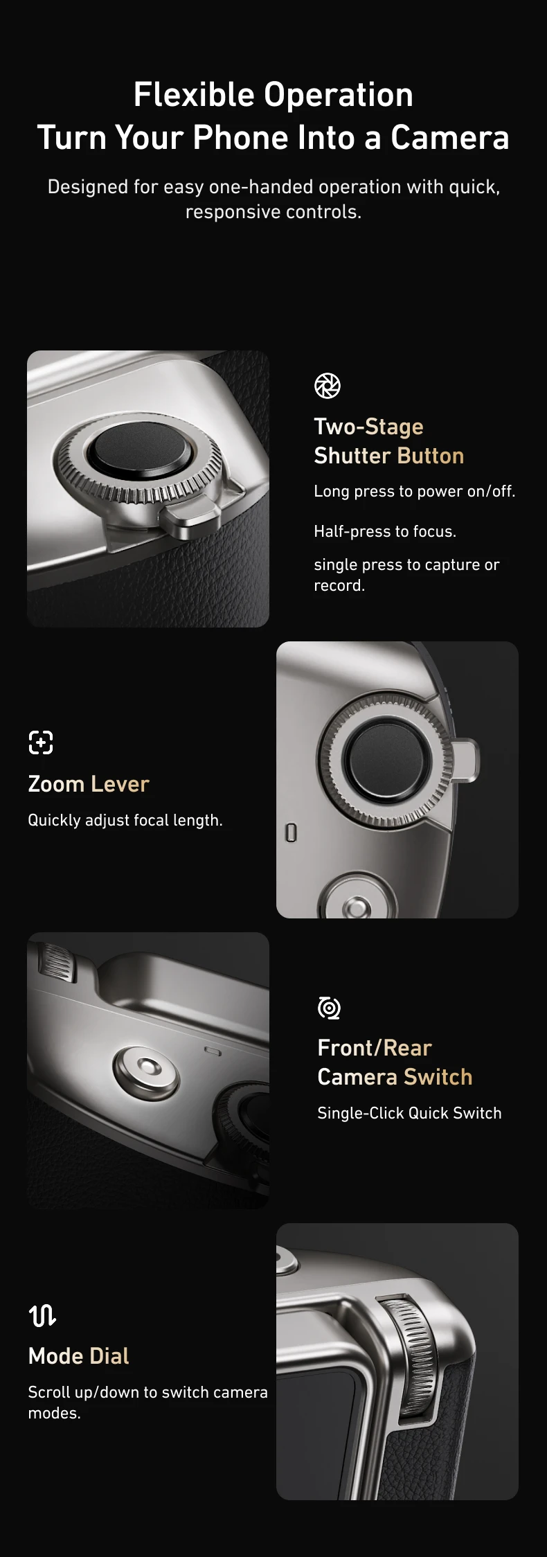 1-Click Camera Switch: Toggle front/rear lenses seamlessly.