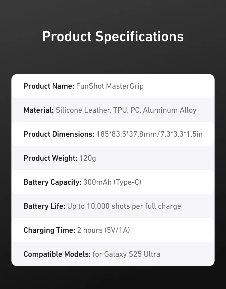 300mAh Battery: Shoot 10,000 photos per charge (2-hour USB-C charging).