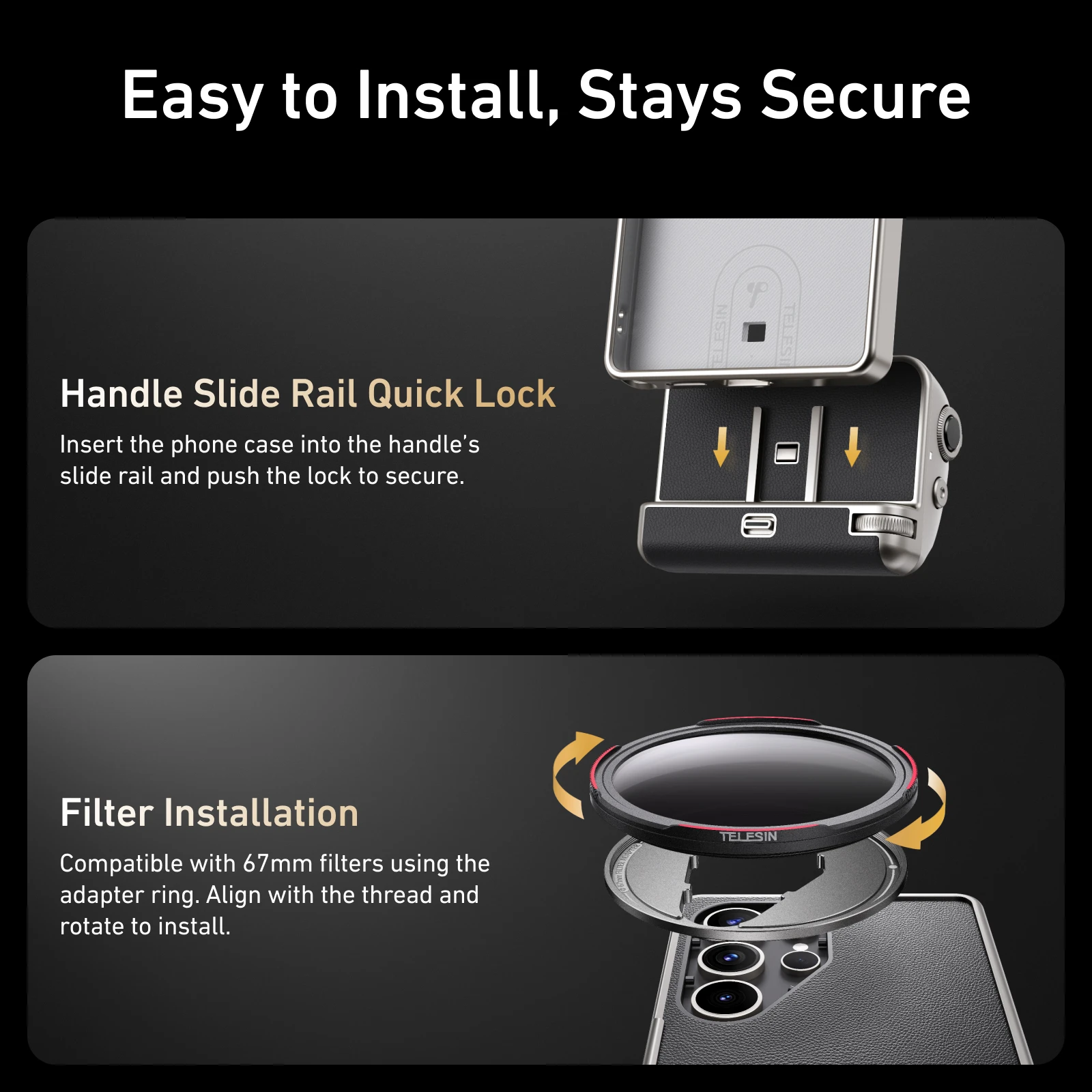 TELESIN Master Shooting Set Phone Camera Hand Grip Phone Holder CPL ND 2-32 Filter Remote Handle For SAMSUNG Galaxy S25 Ultra