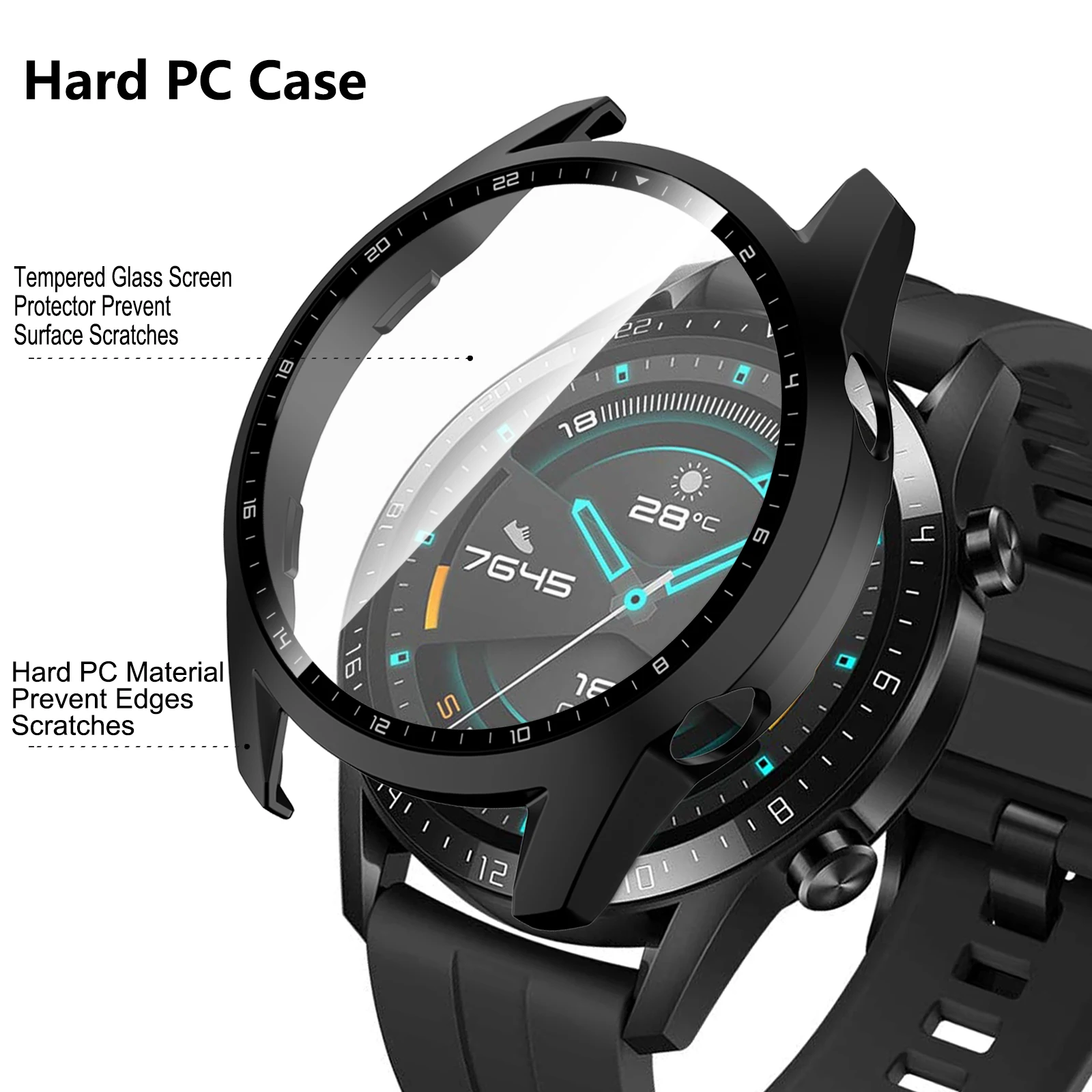 Tempered Glass Case for Huawei Watch GT2 46mm with Full Coverage Bumper Screen Protector