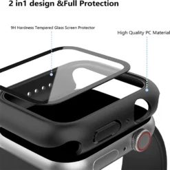 – Tempered glass screen protector and case compatible with various Apple Watch models.