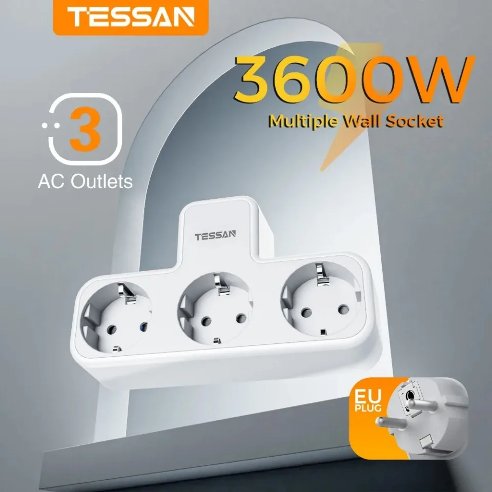 Be the first to review “TESSAN Multiple Wall Socket with 3 AC Outlets Charging Ports EU Plug Wall Power Strip with Overload Protection 3fach Stecker Eu”