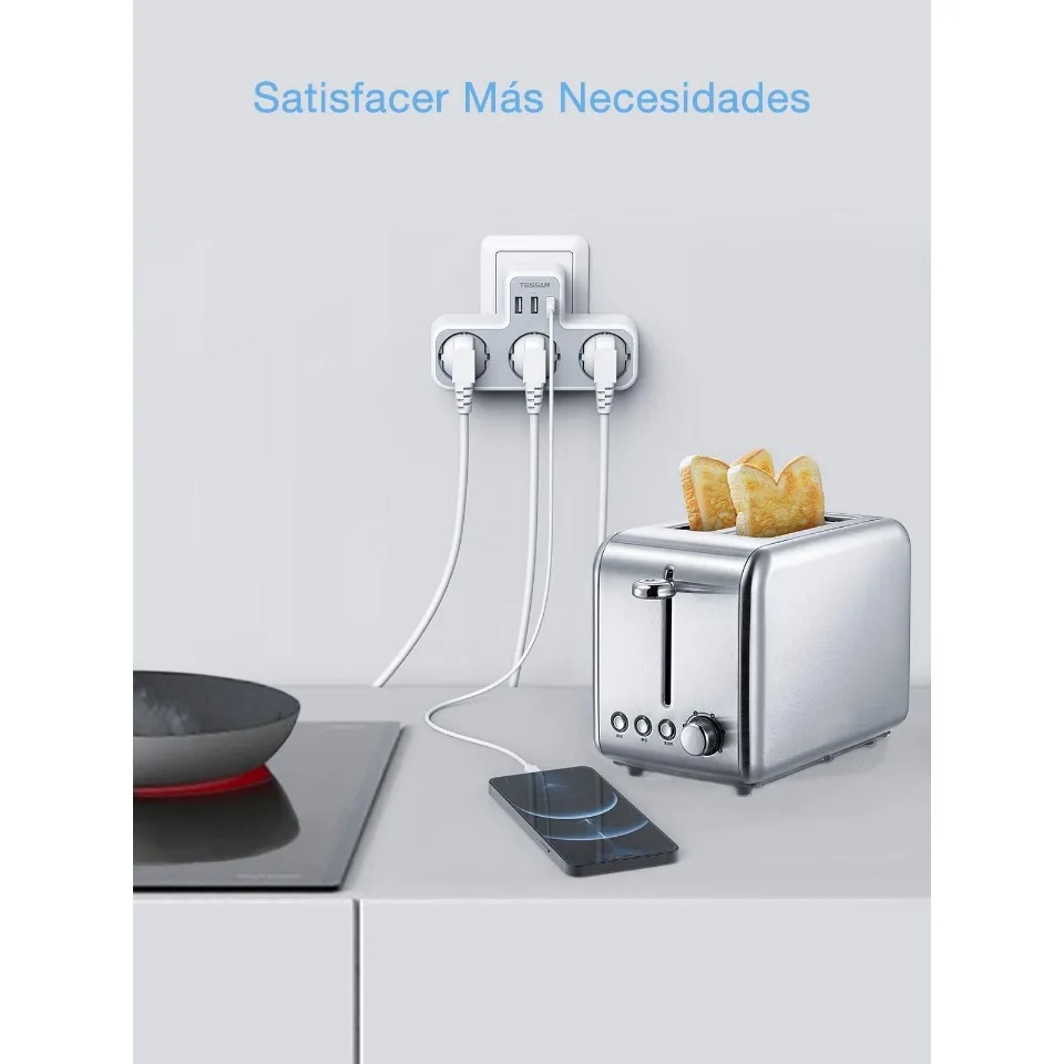 TESSAN Multiple Wall Socket with 3 AC Outlets Charging Ports EU Plug Wall Power Strip with Overload Protection 3fach Stecker Eu