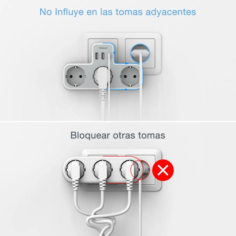 This multi plug does not block adjacent outlets, can accommodate 3 large outlets at the same time without blocking, making it easy to use various equipment in any place with few outlets.