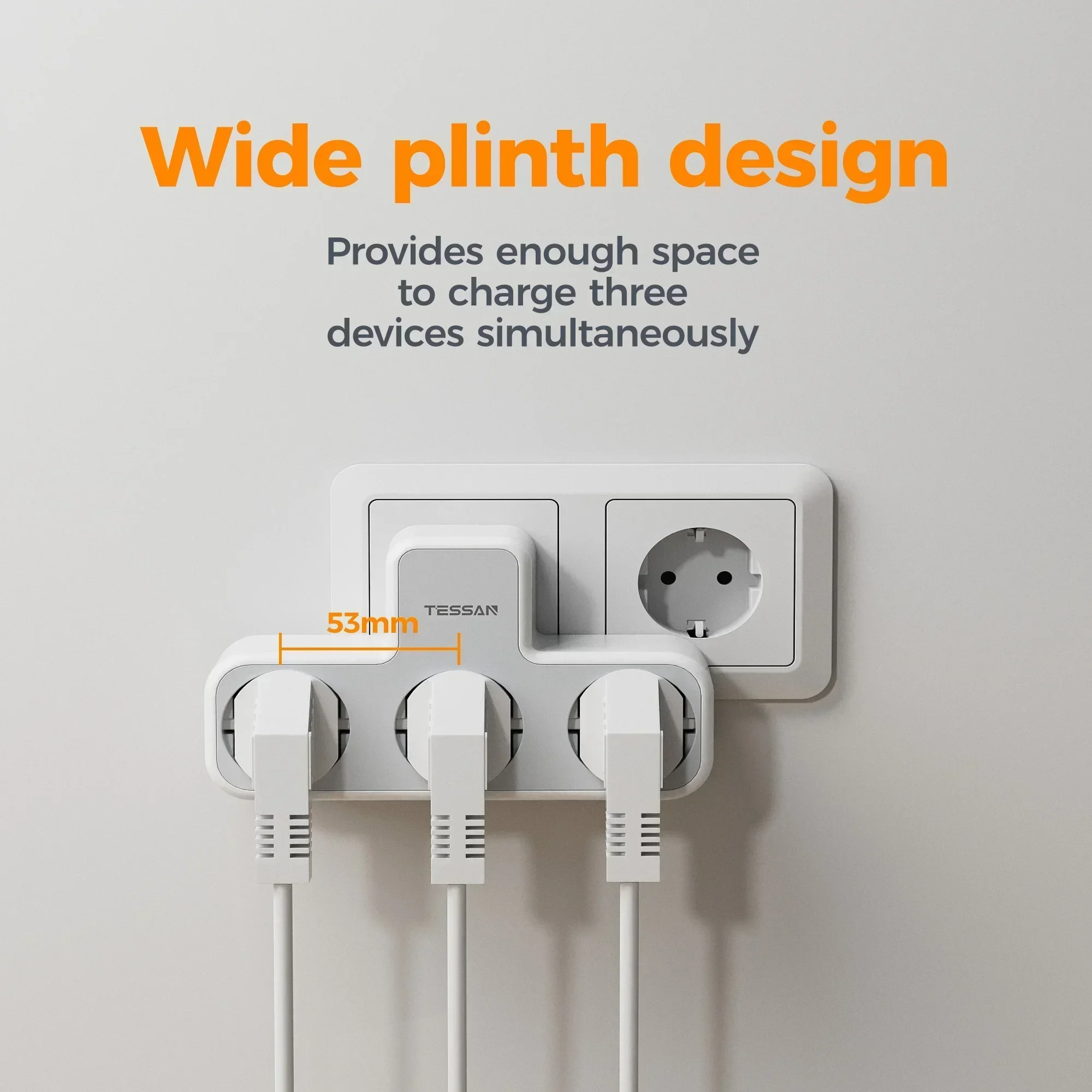 TESSAN Multiple Wall Socket with 3 AC Outlets Charging Ports EU Plug Wall Power Strip with Overload Protection 3fach Stecker Eu
