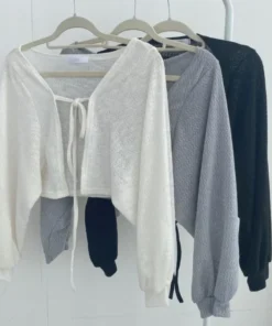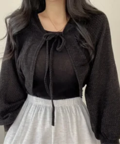 Lace-up Knitwear Cardigan with Lantern Sleeves for Women – Summer Sunscreen Casual Top