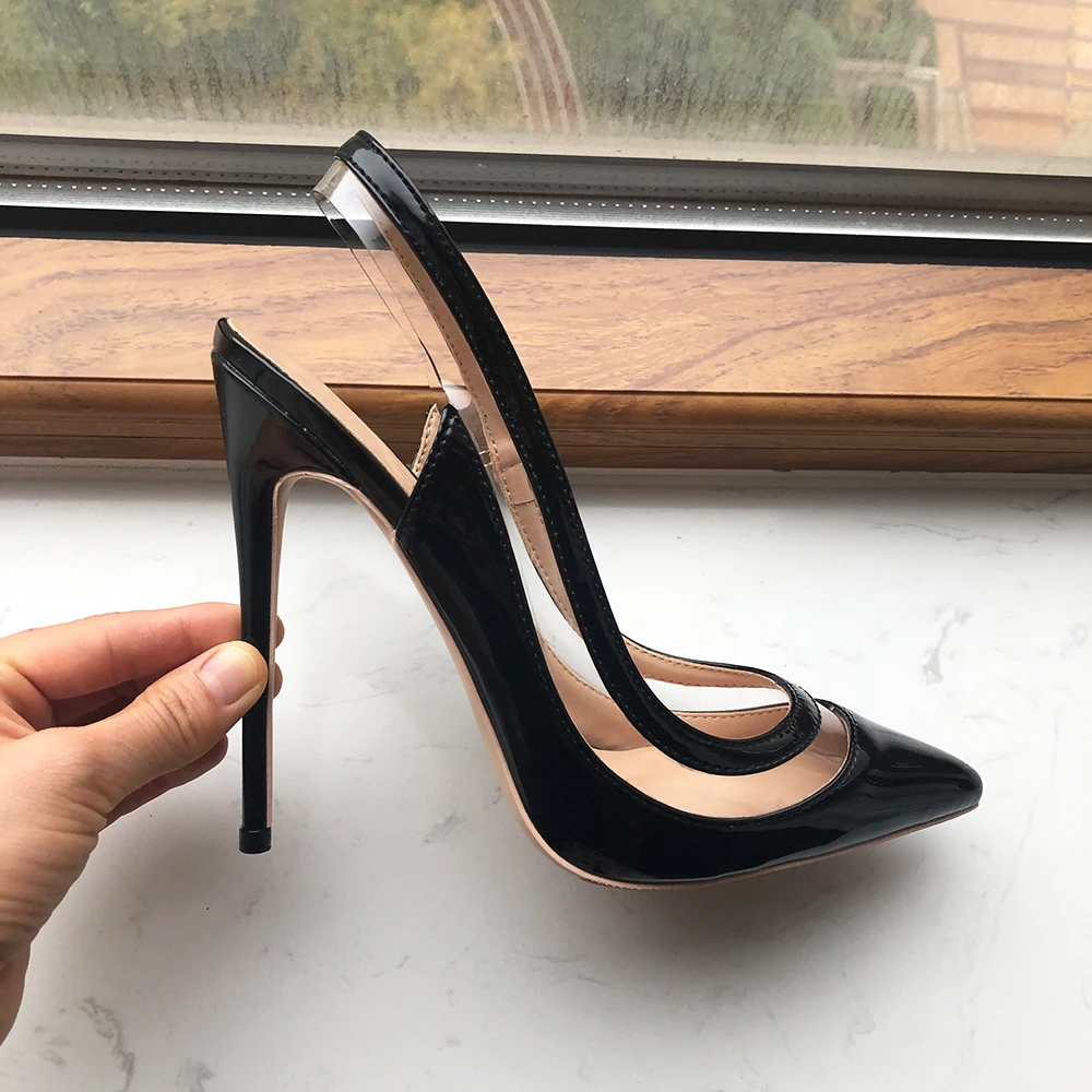 Transparent Patchwork Slingback High Heel Shoes with Pointy Toe for Women