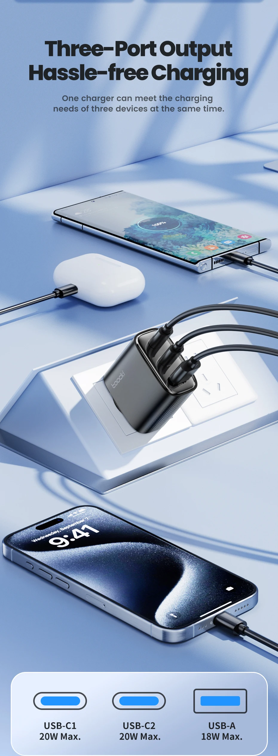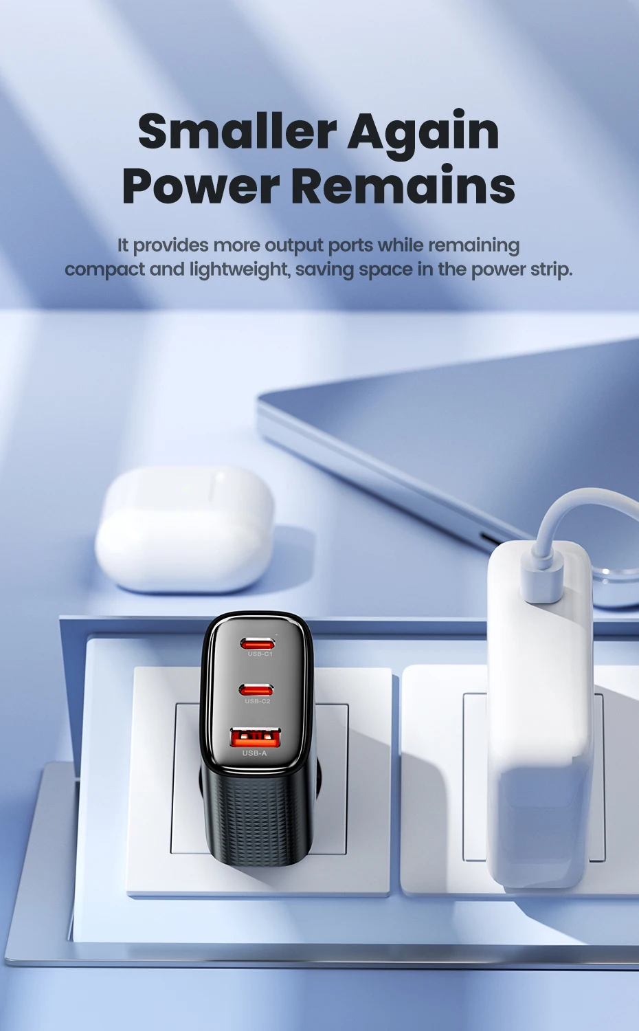 • GaN Technology :The charger uses GaN technology, which makes it smaller and more efficient than traditional chargers.