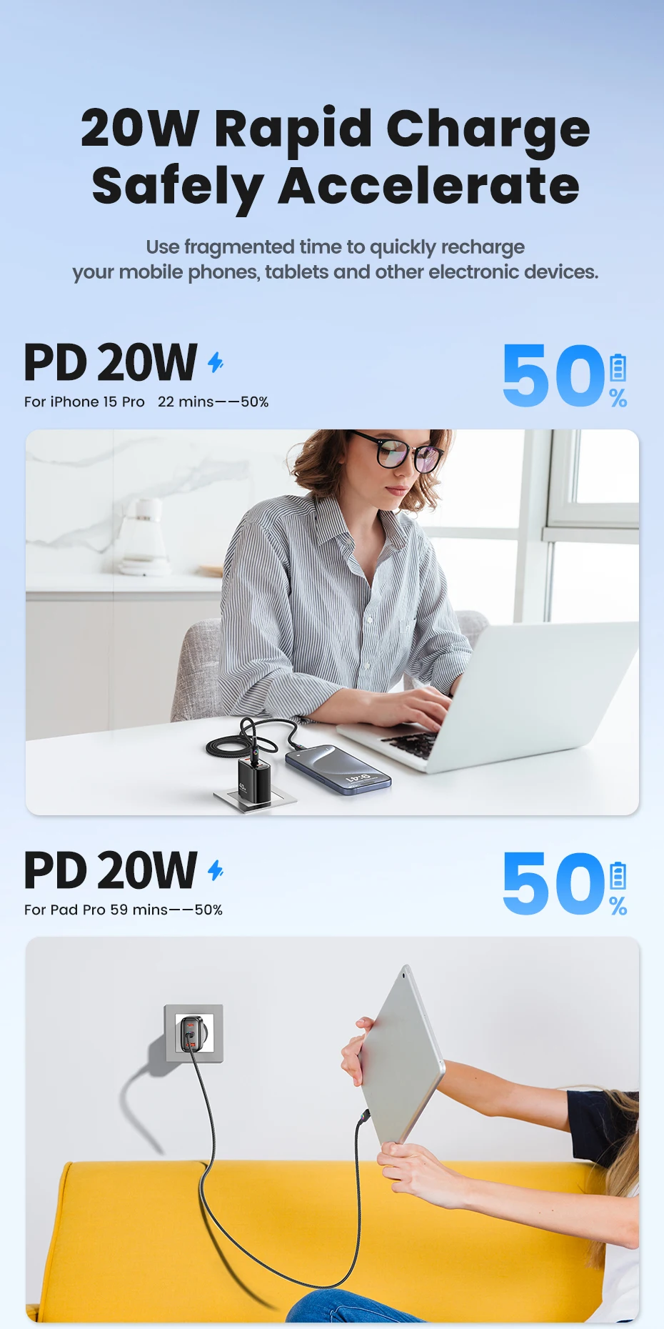 • Fast Charging :With USB PD and QC4.0 PD fast charging, this charger can quickly charge your devices.
