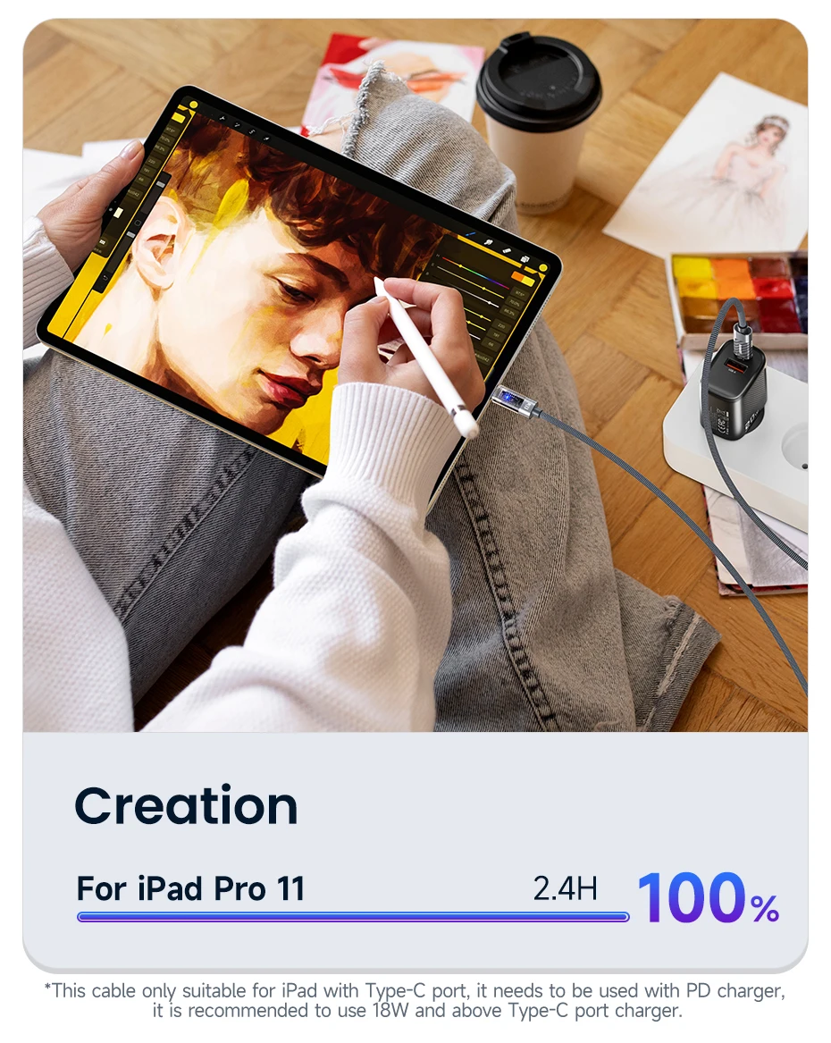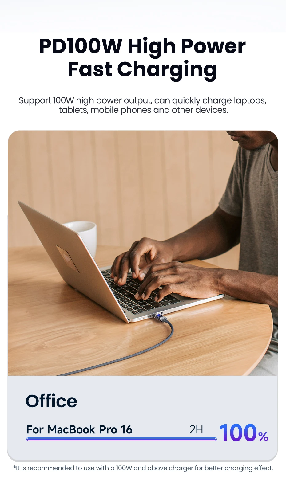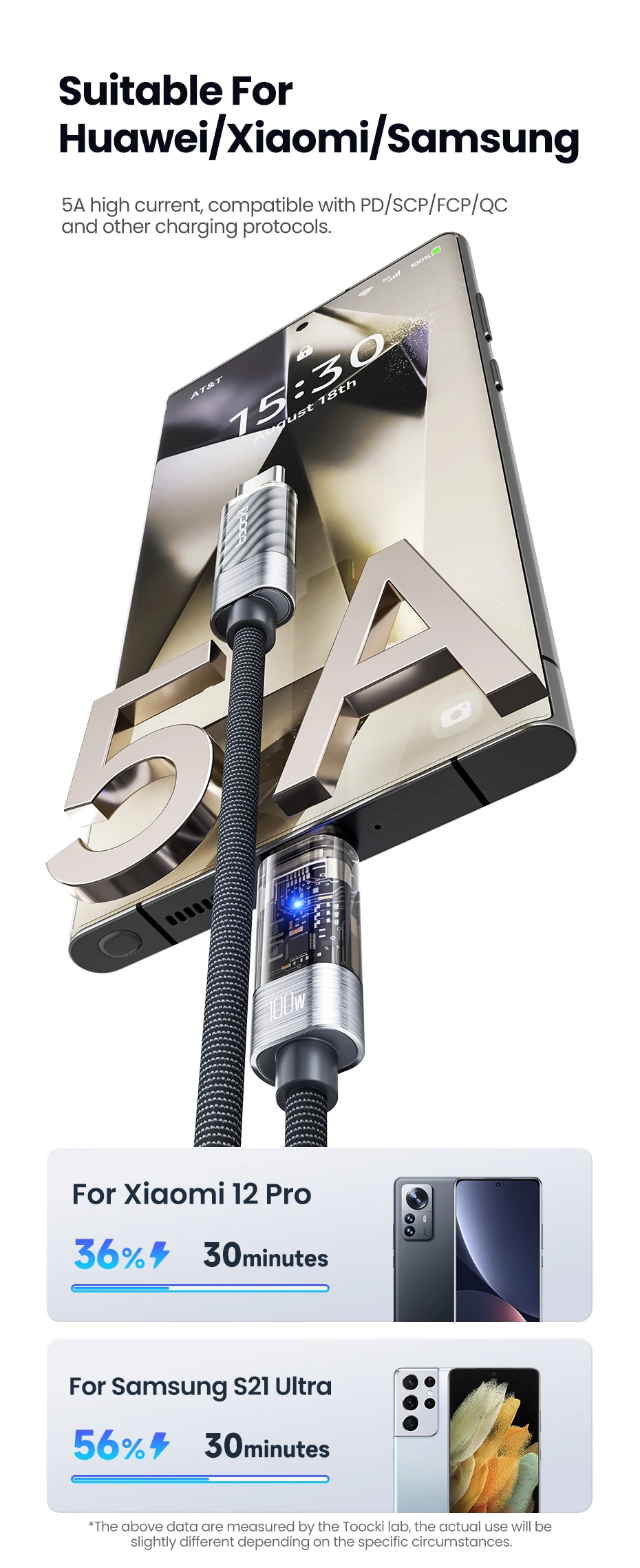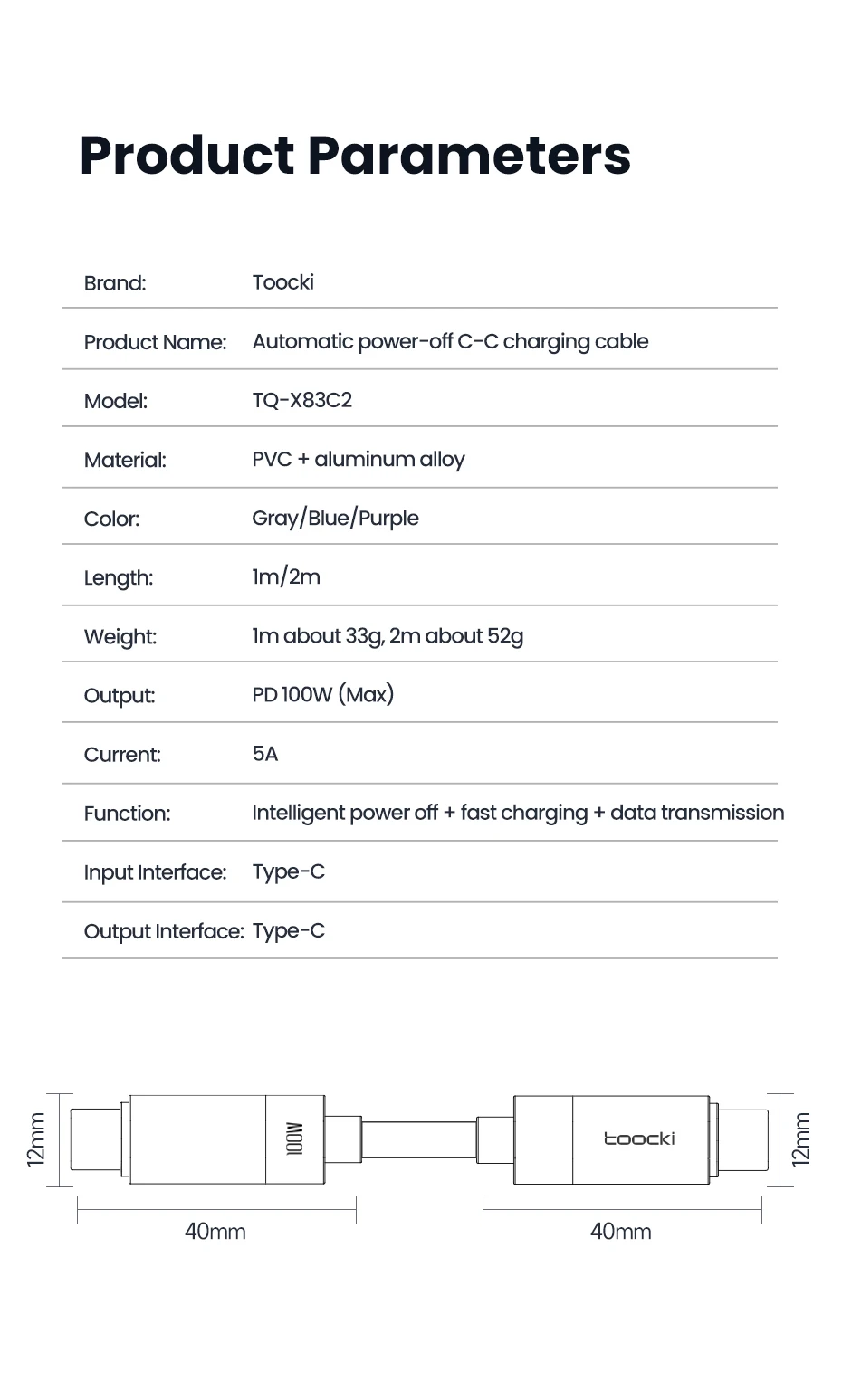 Toocki 100W Fast Charging Cable – 480Mbps Data Sync, Intelligent Power-Off