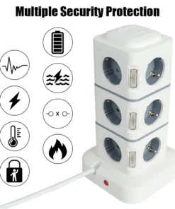 – 12-way tower socket with USB fast charging capabilities.