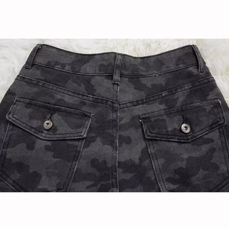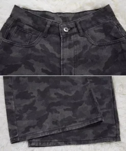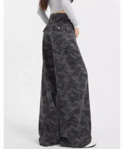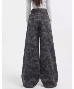High Waist Camouflage Jeans with Baggy Straight Leg Design for Women