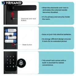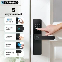 - 5-in-1 unlocking methods: Fingerprint, APP, Password, IC Card, and Physical Key.