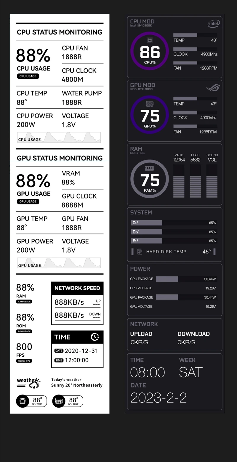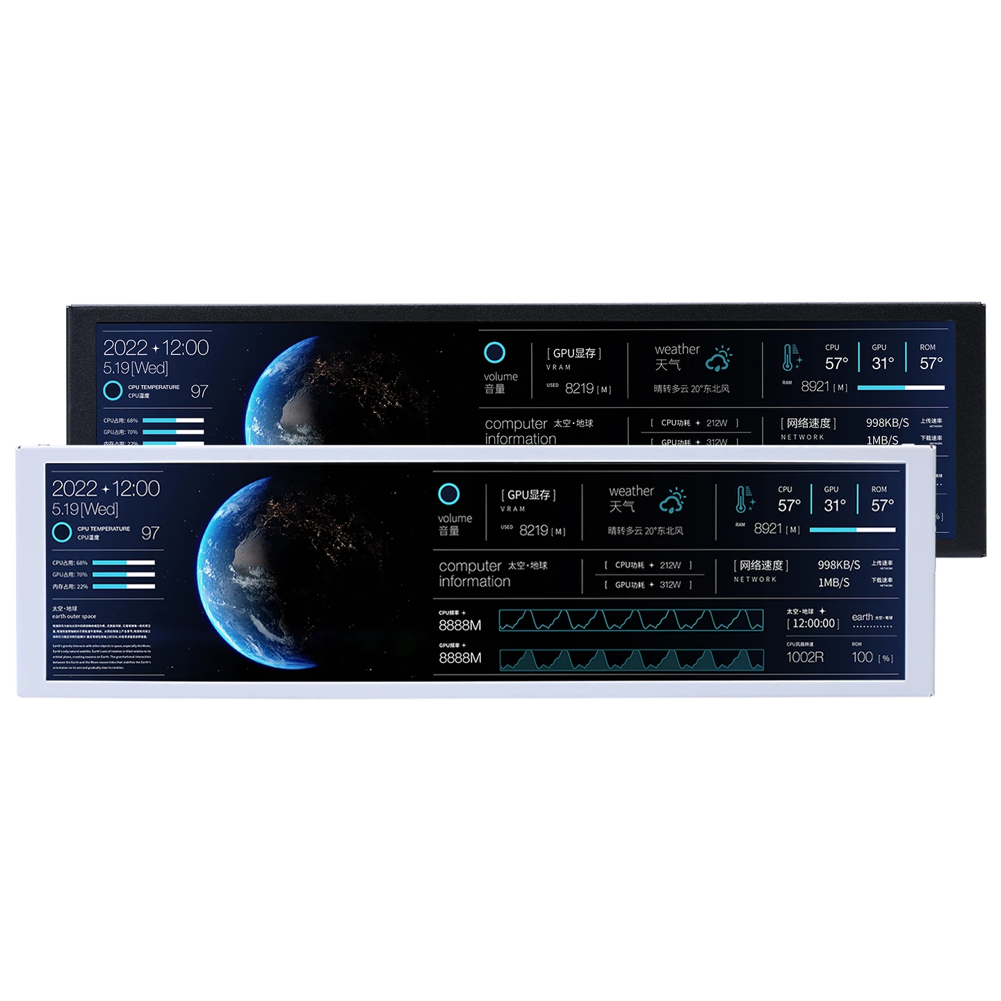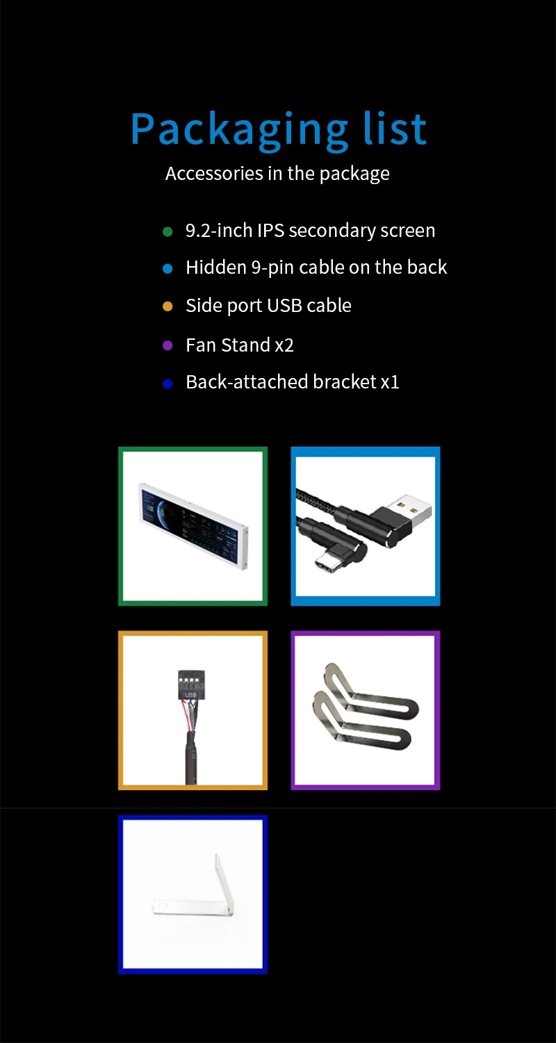 TURZX 9.2 Inch USB Secondary Screen IPS LCD for Chassis 1920*462 Display One Type-C Interface PC Hardware Parameters Weather Monitor No AIDA64
