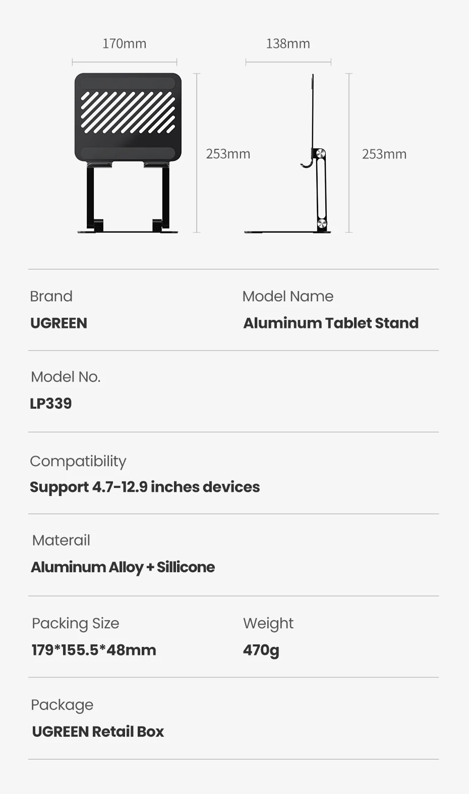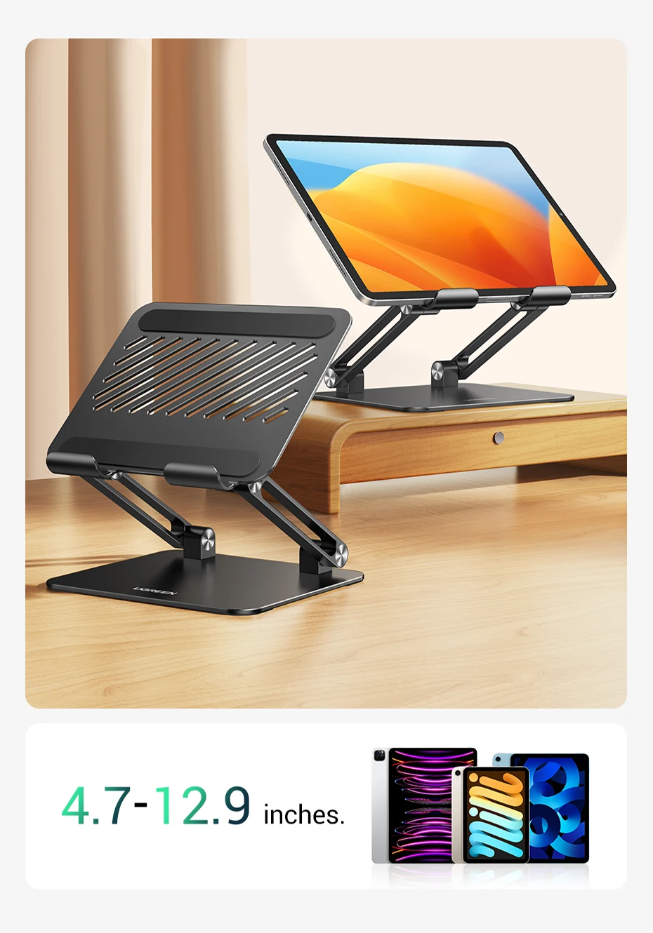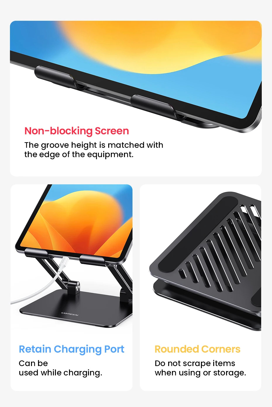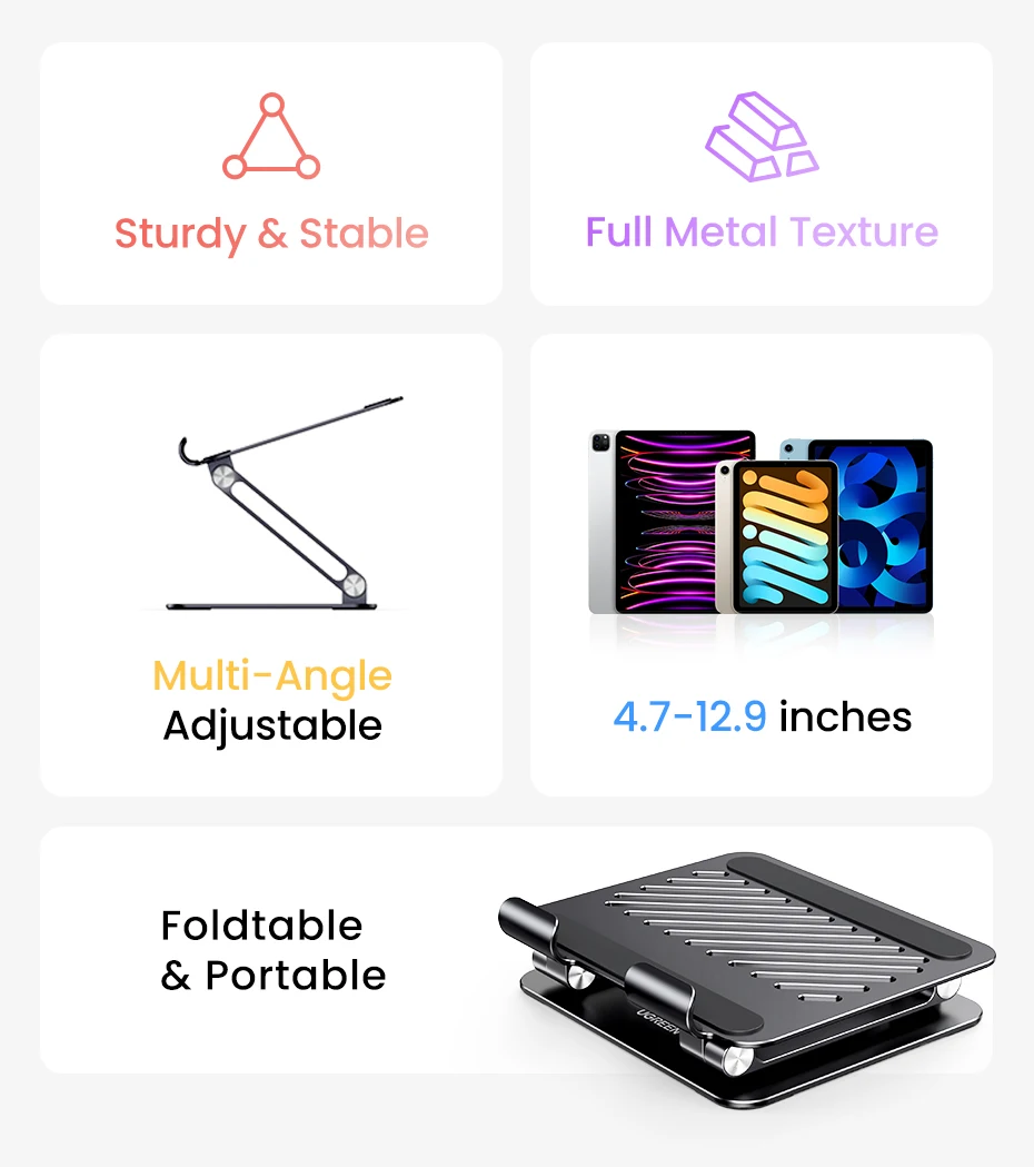 UGREEN ipad pro 12.9 stand drawing is designed to be simple and stylish. Fits to your home and office perfectly.
