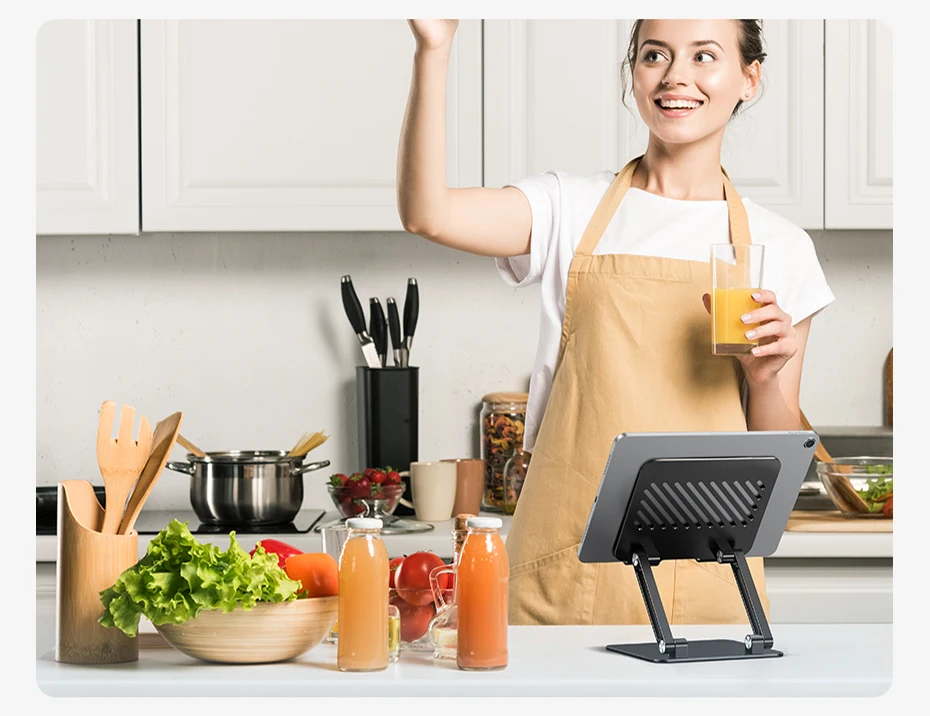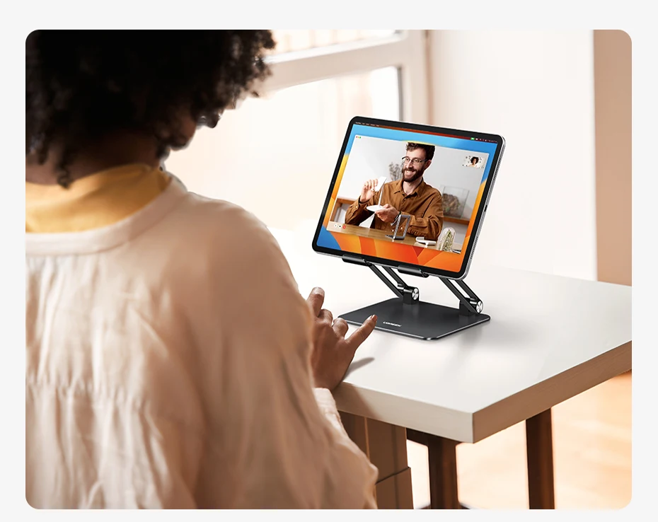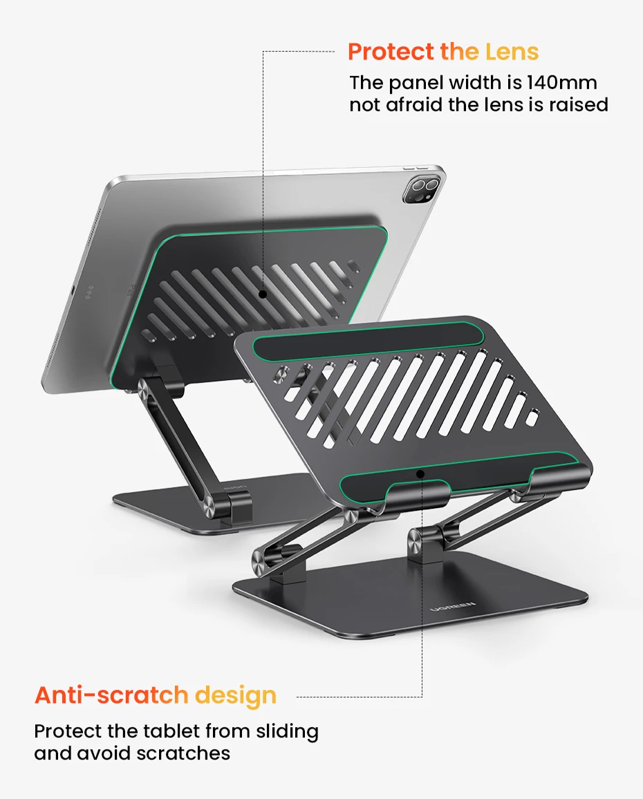 UGREEN tablet holder for desk with forward tilt and the open style design allow for airflow for your ipad, no more worry about overheating.