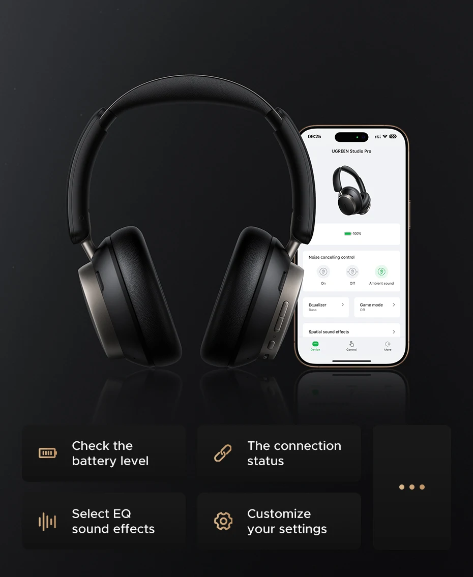 UGREEN Studio Pro Wireless Over-Ear Headphones – 48dB Active Noise Cancellation, Hi-Res Sound, 120h Playtime