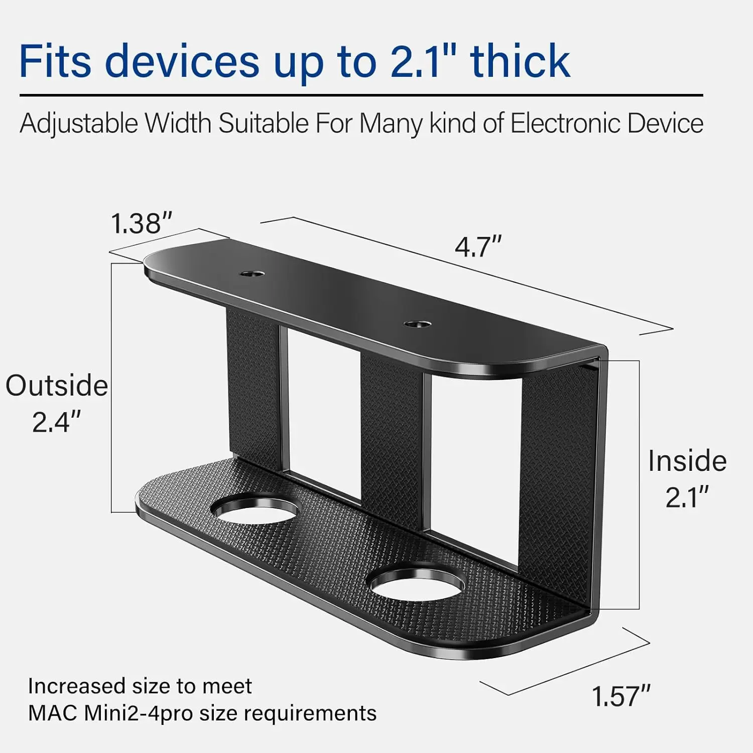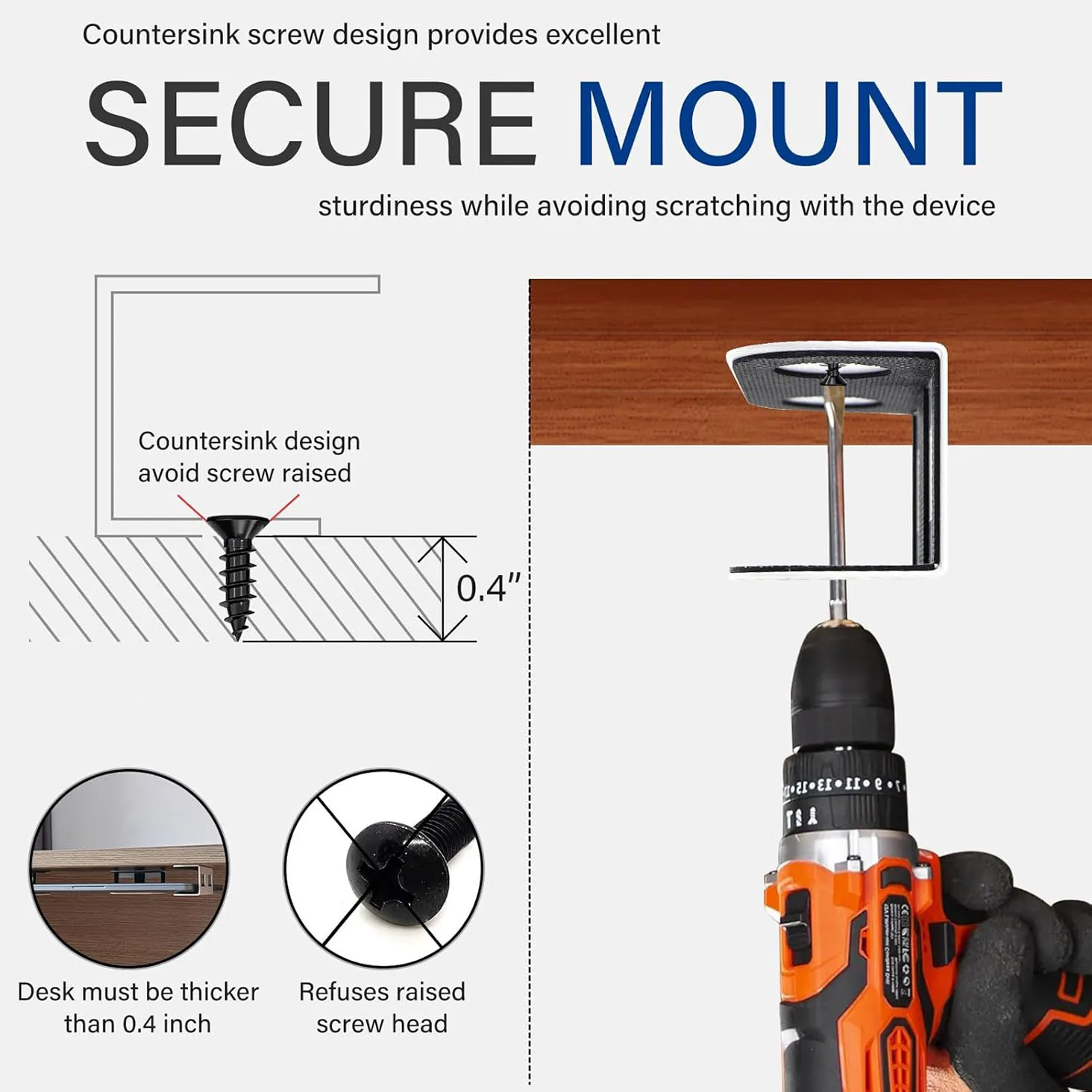 High Quality Material: The bracket is made of high-quality metal material, and the body is coated with powder, which better ensures the durability and reliability of the bracket. It can be easily installed under or on the side of the table. The use of screws for fixation has stronger load-bearing capacity, is safer and more stable than traditional bonding methods, effectively preventing valuable equipment from sliding and damage, allowing you to use the equipment with peace of mind
