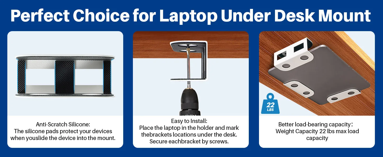 Under Desk Laptop Mount with Anti-Scratch Silicone Shelf