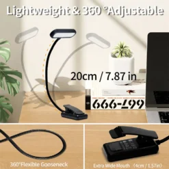 – A versatile reading light with a 360° adjustable neck and sturdy clip.