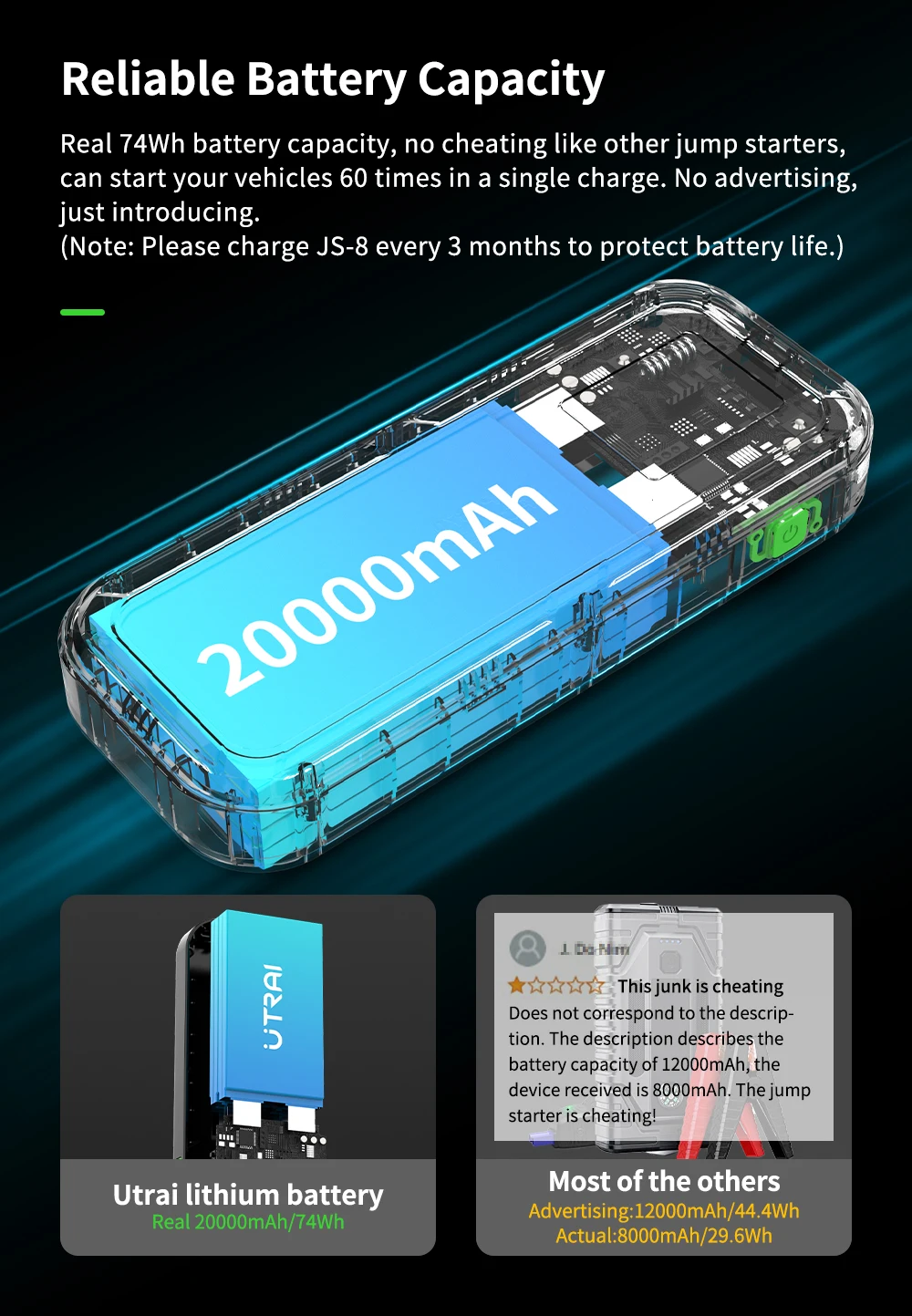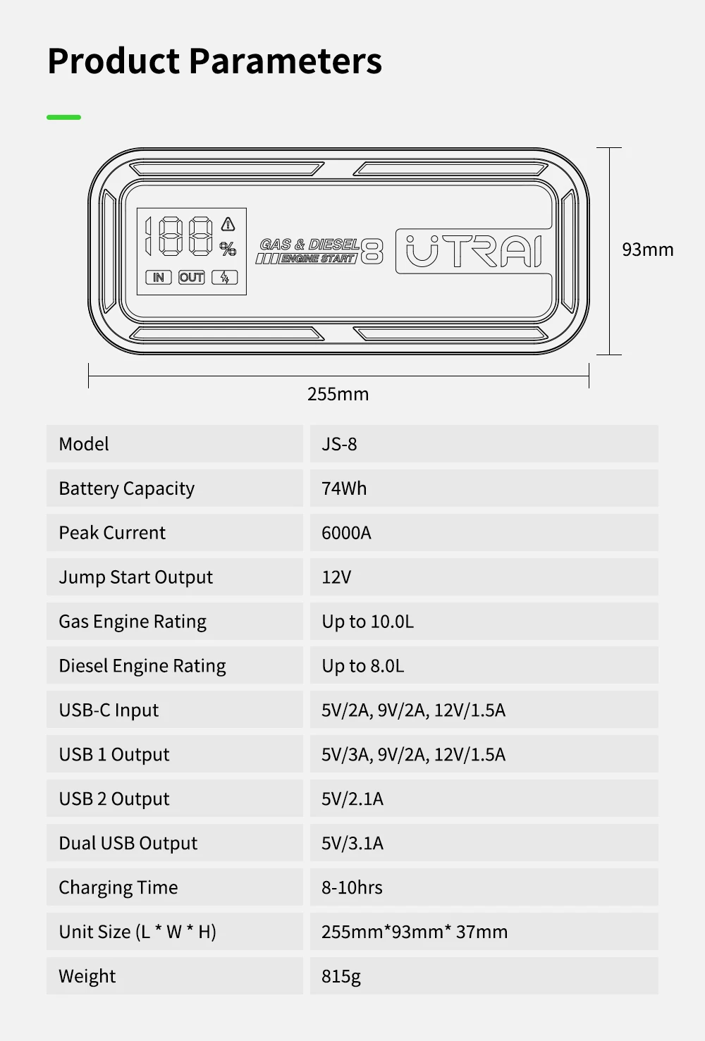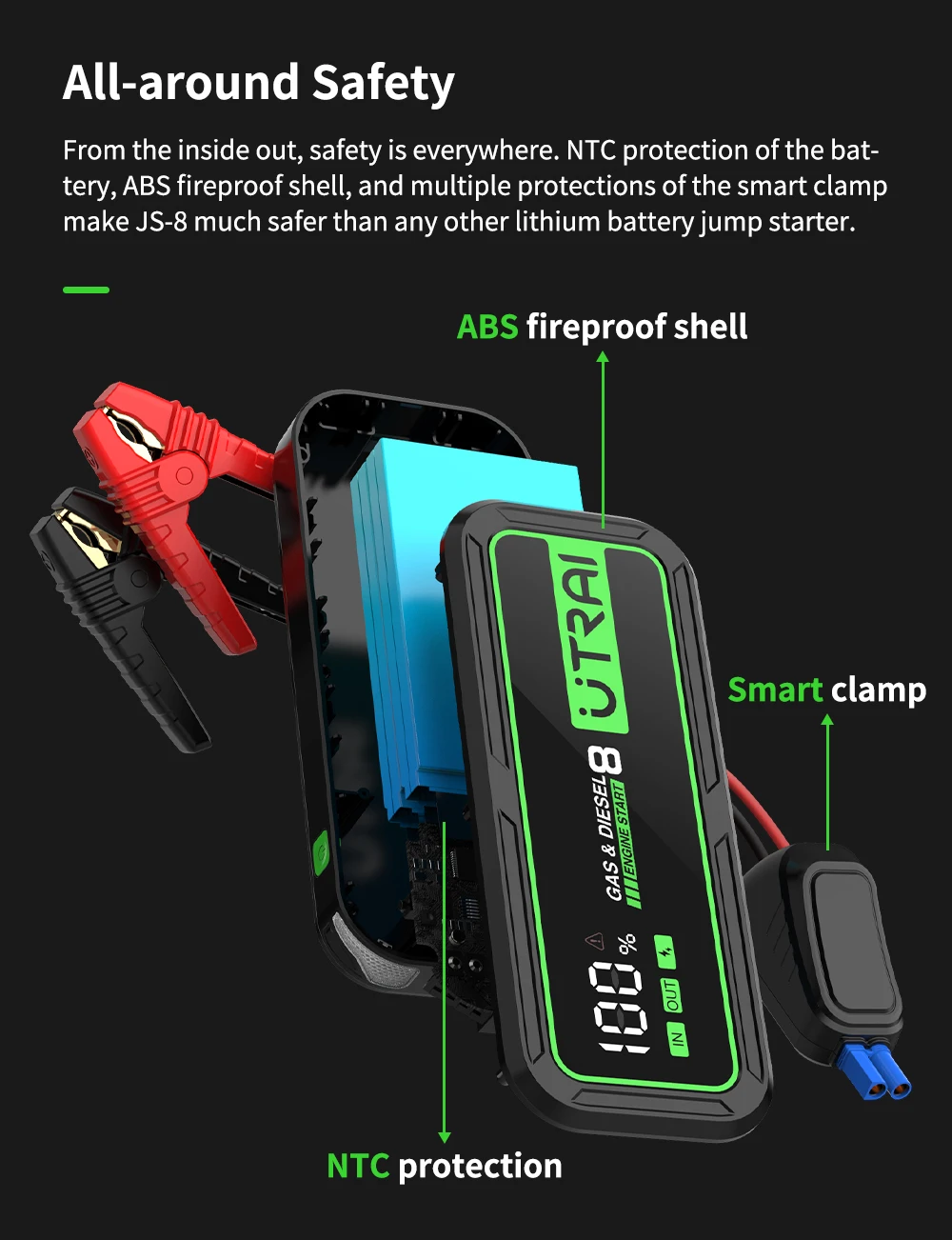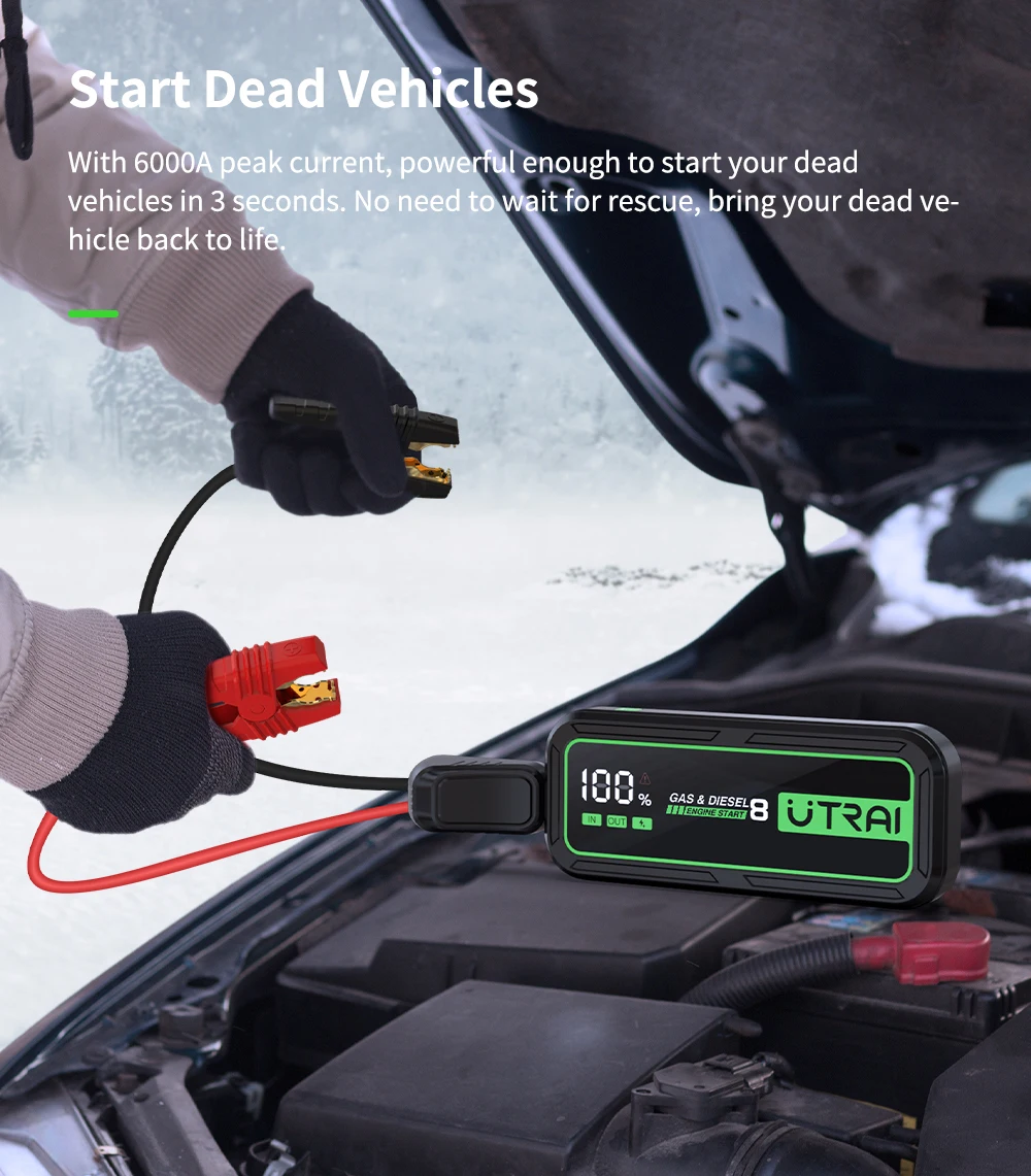 UTRAI Power Bank Car Jump Starter 6000A 20000mAh Starting Device Auto Emergency Car Battery Booster Smart NTC Protection JS-8