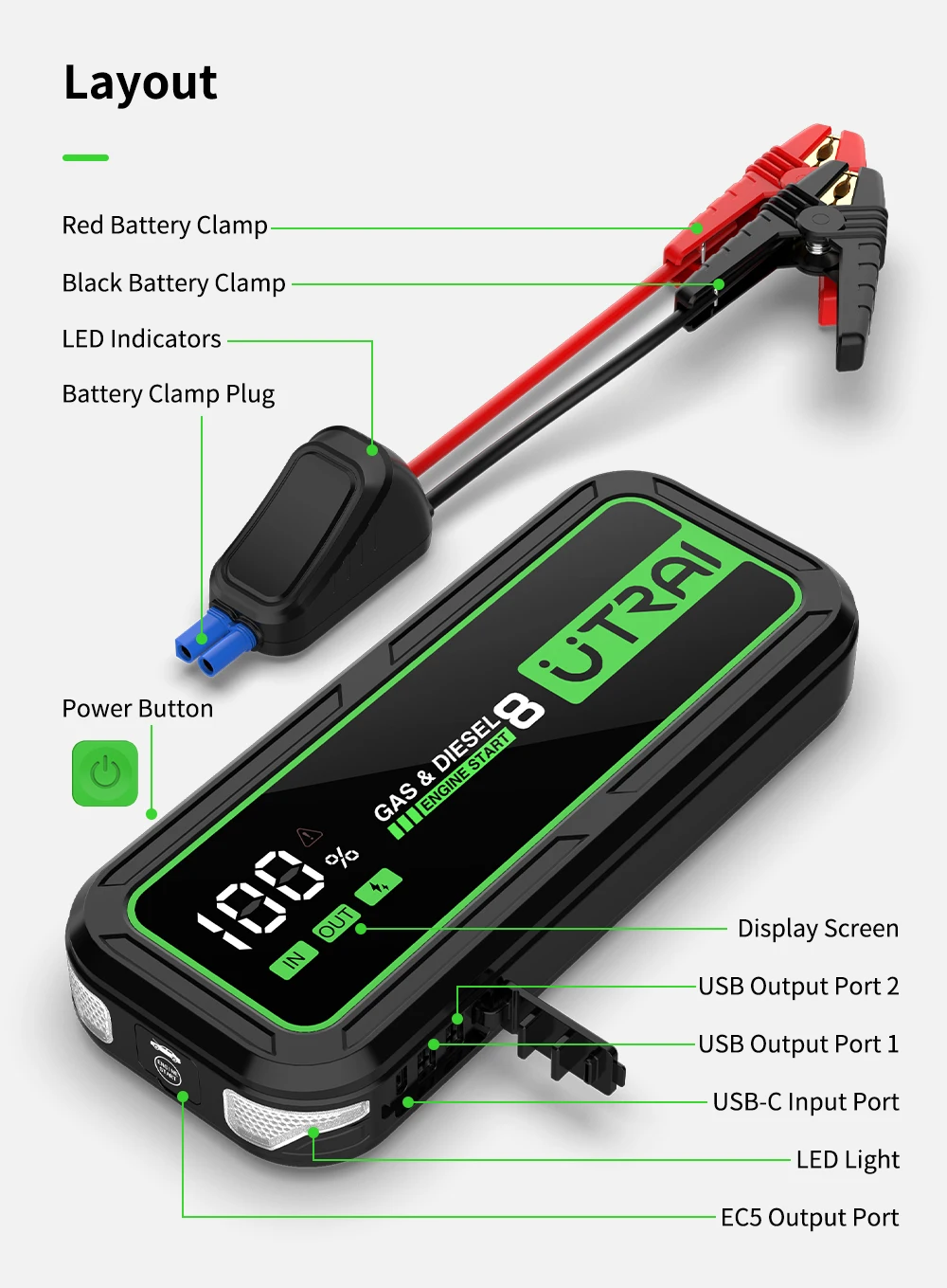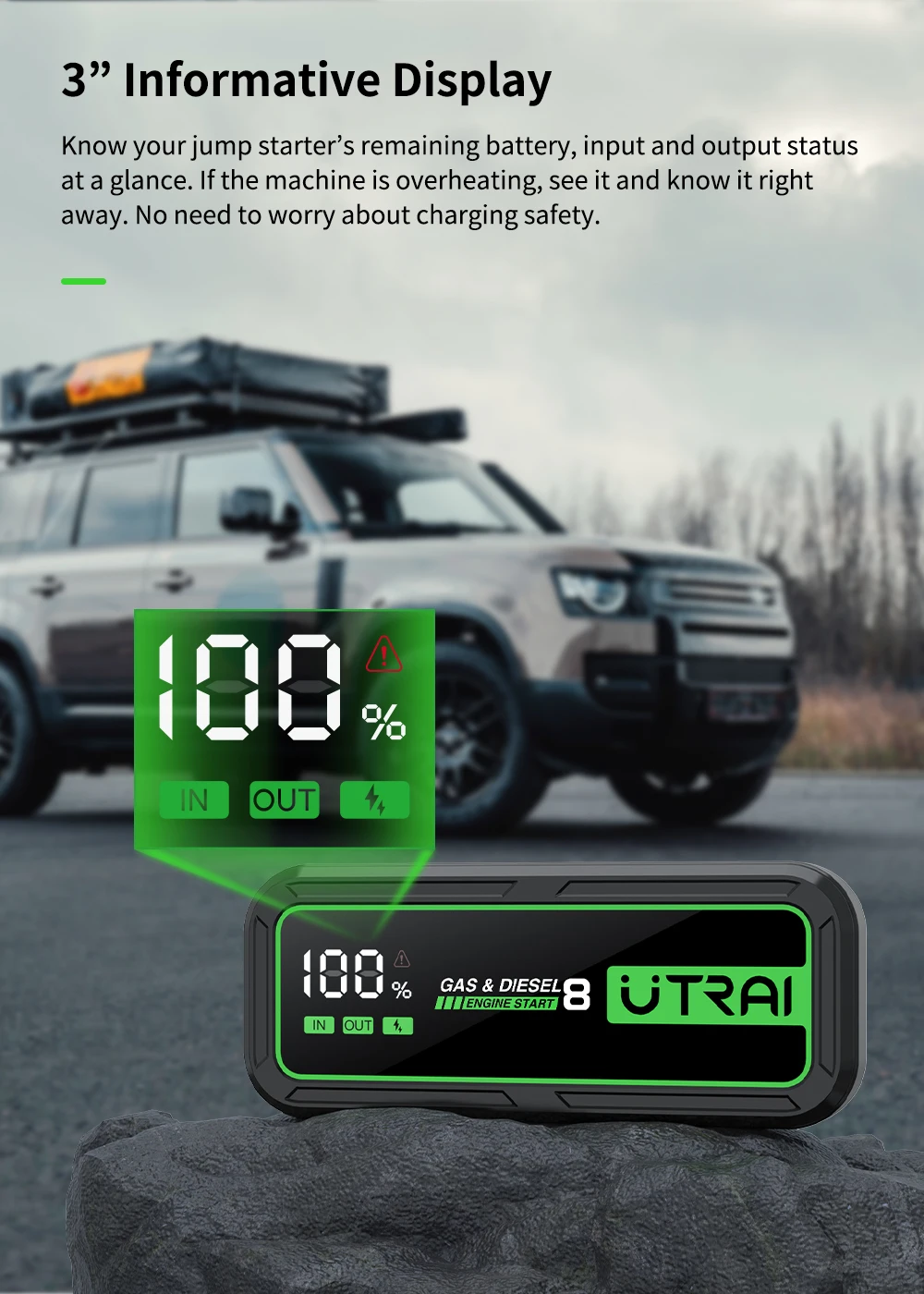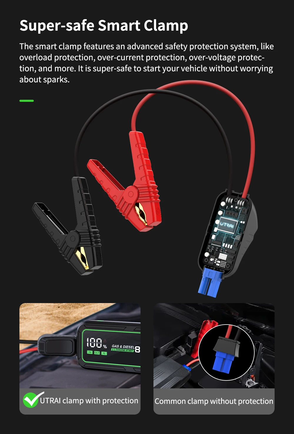 UTRAI Power Bank Car Jump Starter 6000A 20000mAh Starting Device Auto Emergency Car Battery Booster Smart NTC Protection JS-8