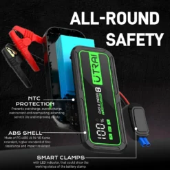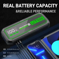 – UTRAI Power Bank Car Jump Starter with a capacity of 6000A and 20000mAh designed for automotive emergency battery boosting.
