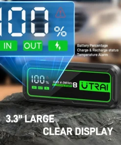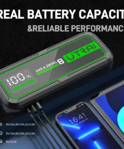 – UTRAI Power Bank Car Jump Starter with a capacity of 6000A and 20000mAh designed for automotive emergency battery boosting.