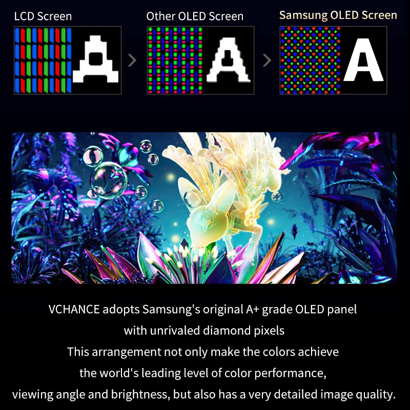 – The VCHANCE 13.3” OLED Portable Monitor features a 1920×1080 resolution and is designed for an enhanced viewing experience.