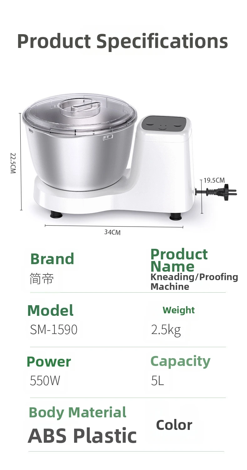 Vertical Stand Mixer – 5L Stainless Steel Dough Kneader, 500W Power for Home Baking