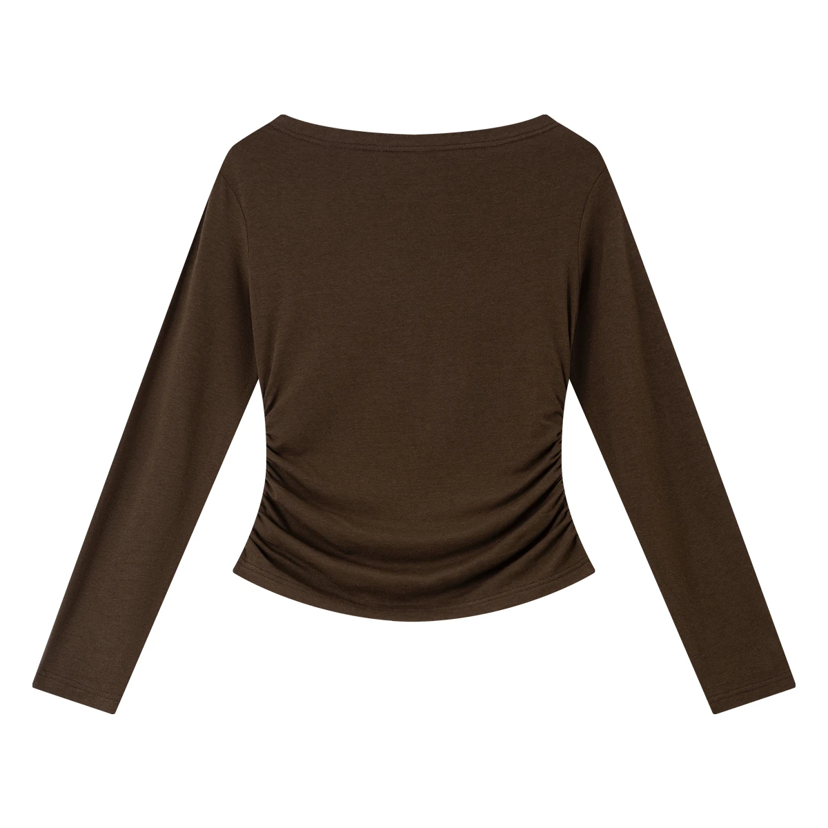 Casual T-shirts with French Slash Neck and Long Sleeves for Women – Slim Fit Knitted Tees